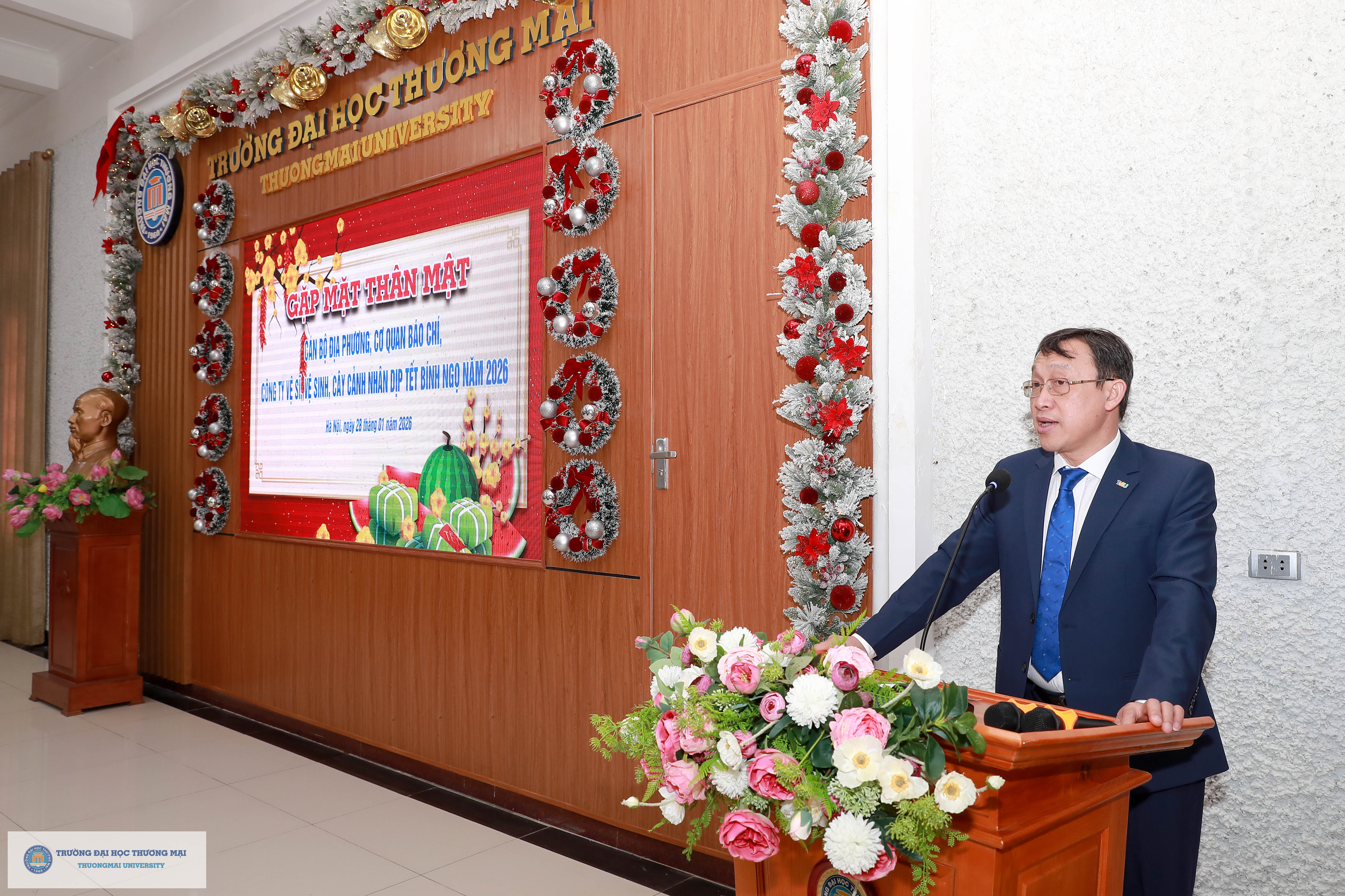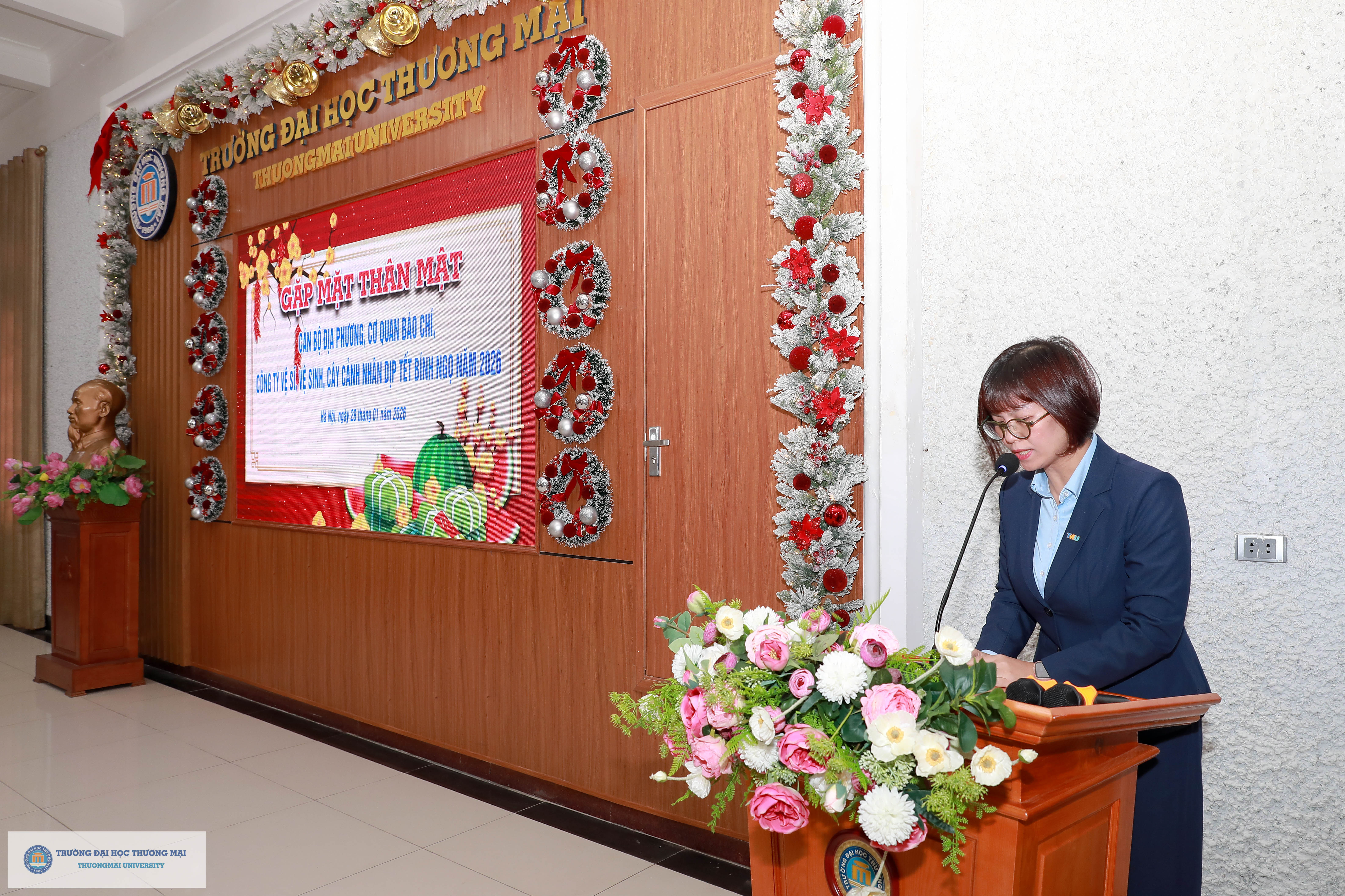 Phát biểu tại buổi gặp mặt, PGS,TS. Nguyễn Đức Nhuận - Phó Hiệu trưởng Nhà trường đánh giá cao sự nỗ lực của các cơ quan báo chí, đơn vị truyền thông, các công ty vệ sĩ, vệ sinh, cây cảnh đã tích cực đồng hành cùng với sự phát triển của Nhà trường. Đồng thời bày tỏ mong muốn thời gian tới, các đơn vị đối tác sẽ tiếp tục cùng Nhà trường thực hiện tốt vai trò định hướng, truyền tải thông tin chính xác và kịp thời tới xã hội. Phó Hiệu trưởng cũng thể hiện tình cảm trân trọng tới các đồng chí cán bộ địa phương trên địa bàn đã giúp đỡ, đồng hành cùng Trường Đại học Thương mại thời gian qua.
