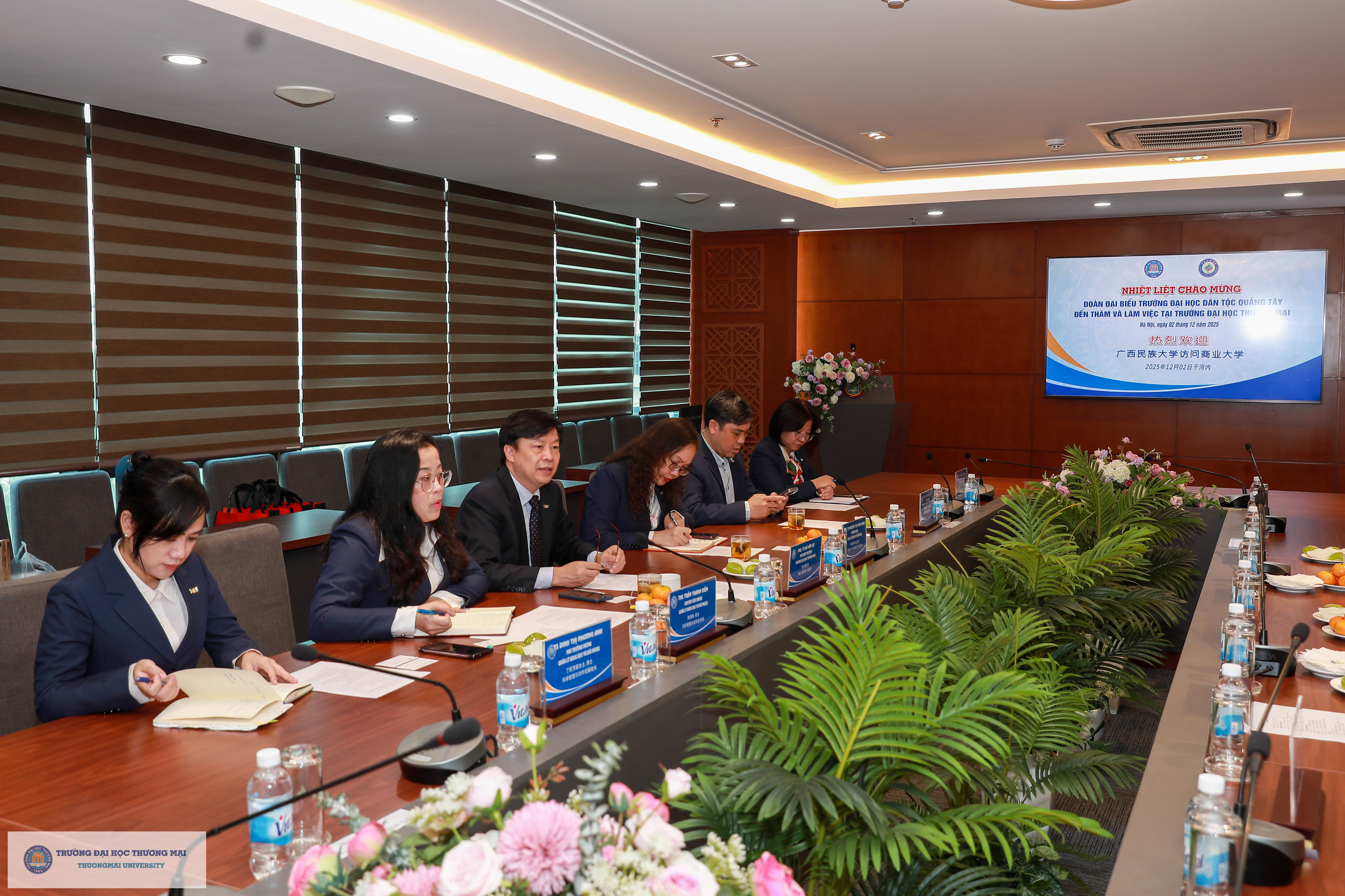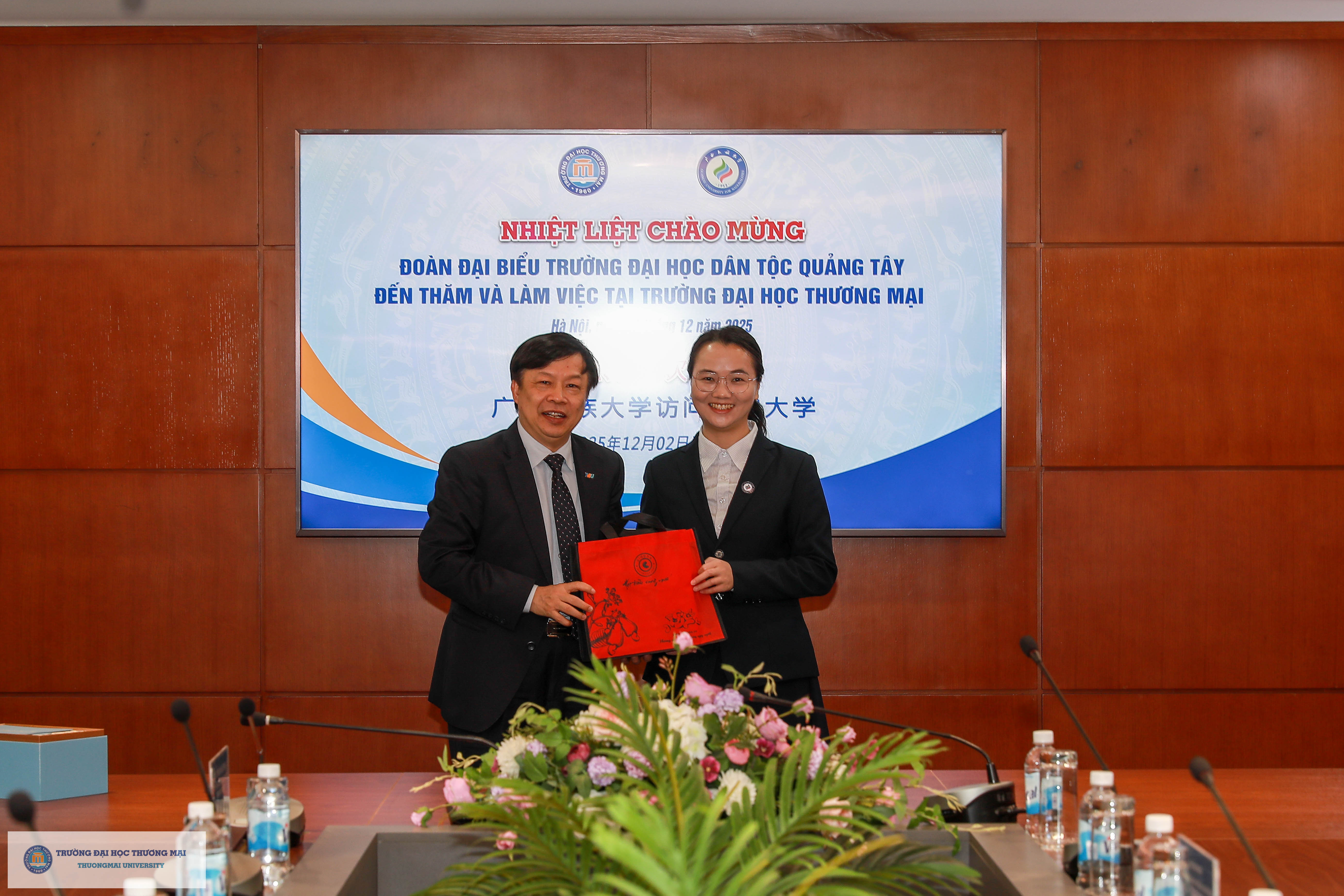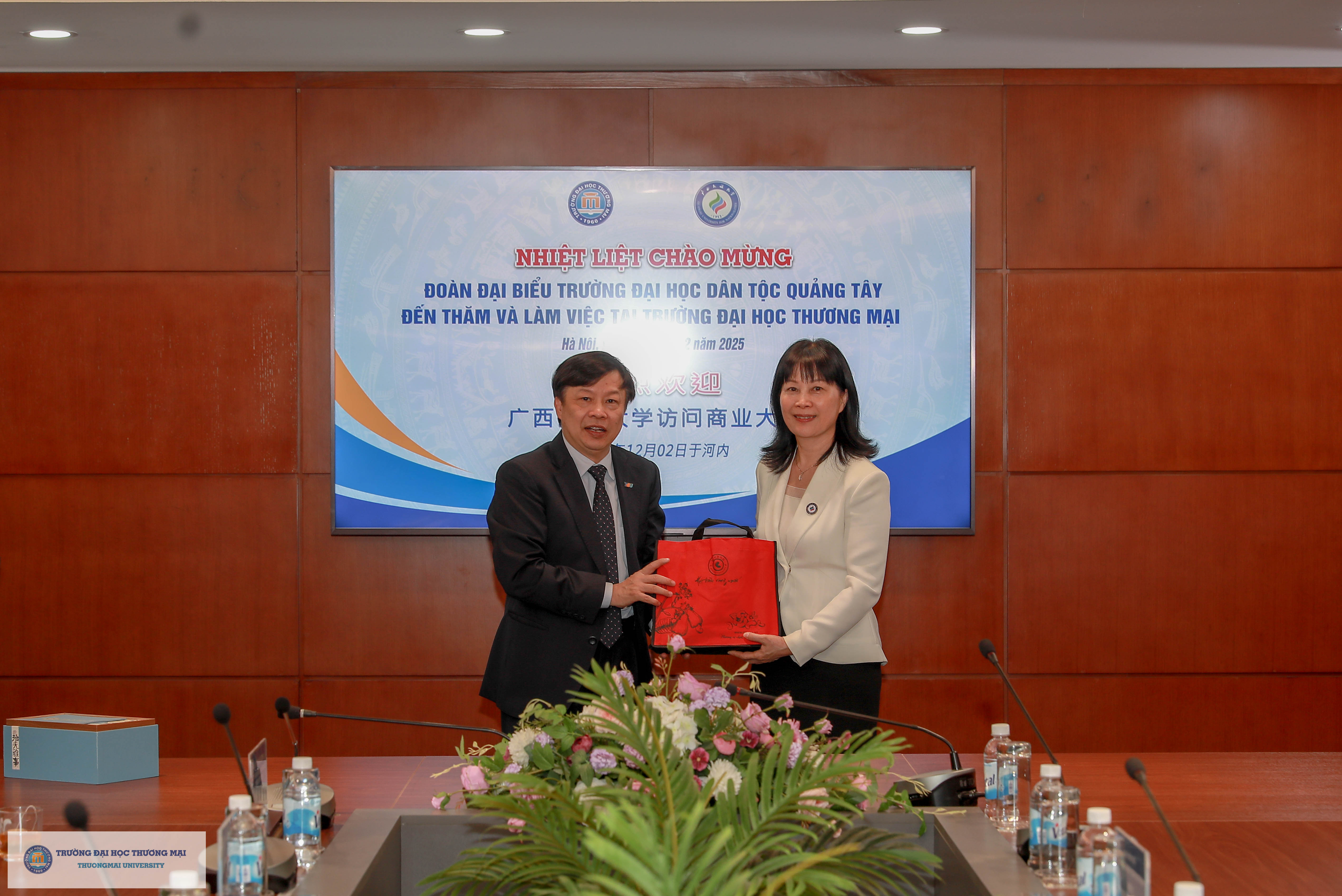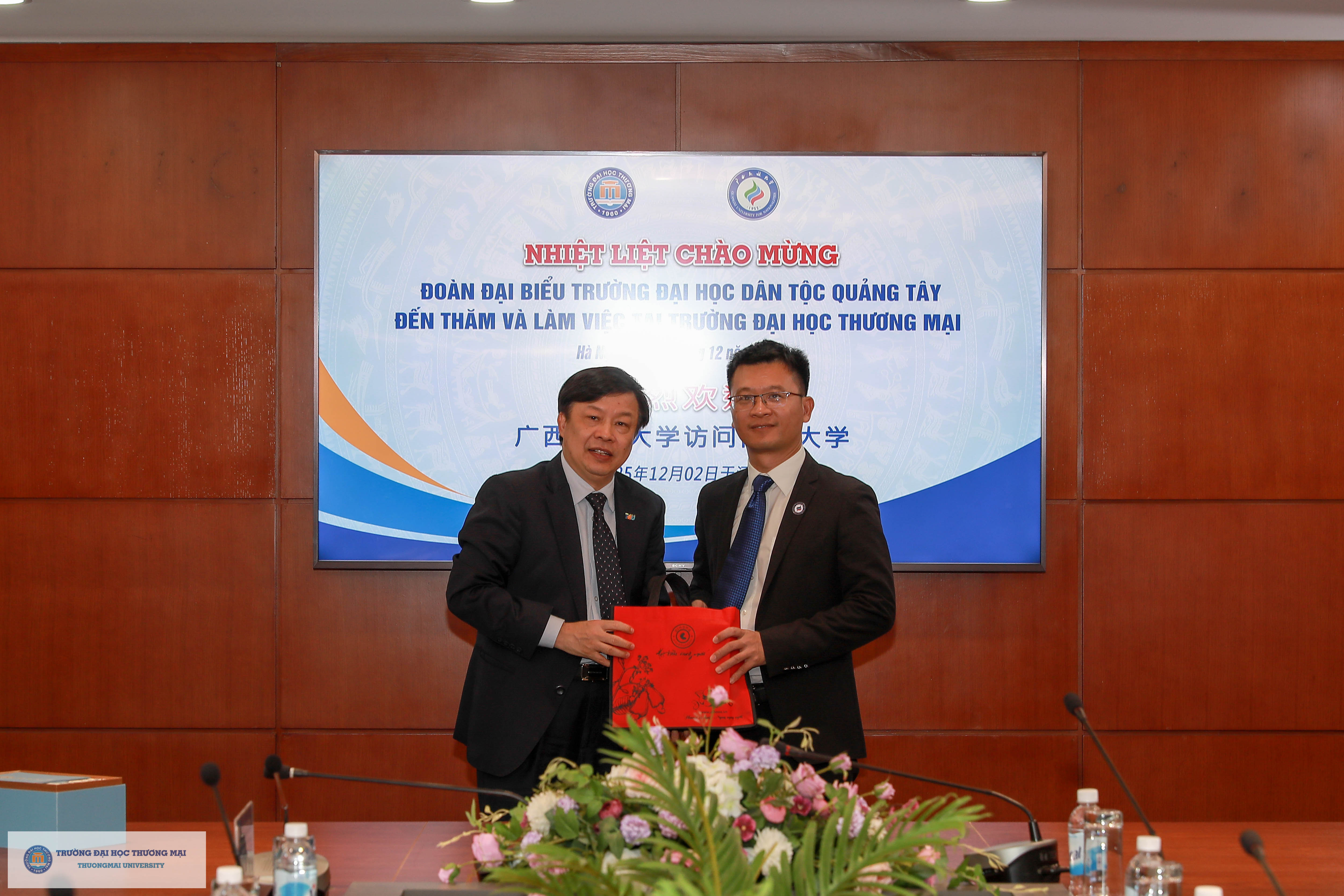 Cụ thể, về hợp tác trong trao đổi, bồi dưỡng giảng viên, trao đổi sinh viên, đại diện Nhà trường mong muốn mời giảng viên Đại học Dân tộc Quảng Tây hợp tác giảng dạy trong các chương trình đào tạo tiếng Trung của Trường Đại học Thương mại, đồng thời nhiều giảng viên tiếng Trung của Trường có nhu cầu nâng cao trình độ ở bậc Tiến sĩ. Trường Đại học Dân tộc Quảng Tây có các chương trình đào tạo ngành Hán ngữ từ bậc Cử nhân tới Tiến sĩ, hoàn toàn có thể đáp ứng nhu cầu đào tạo nâng cao trình độ Hán ngữ cho sinh viên của Trường Đại học Thương mại, cũng như đào tạo trình độ Tiến sĩ cho giảng viên của Trường. Hai bên cũng sẽ tích cực nghiên cứu và xúc tiến các hoạt động trao đổi sinh viên theo kỳ, trao đổi và giao lưu sinh viên ngắn hạn.
