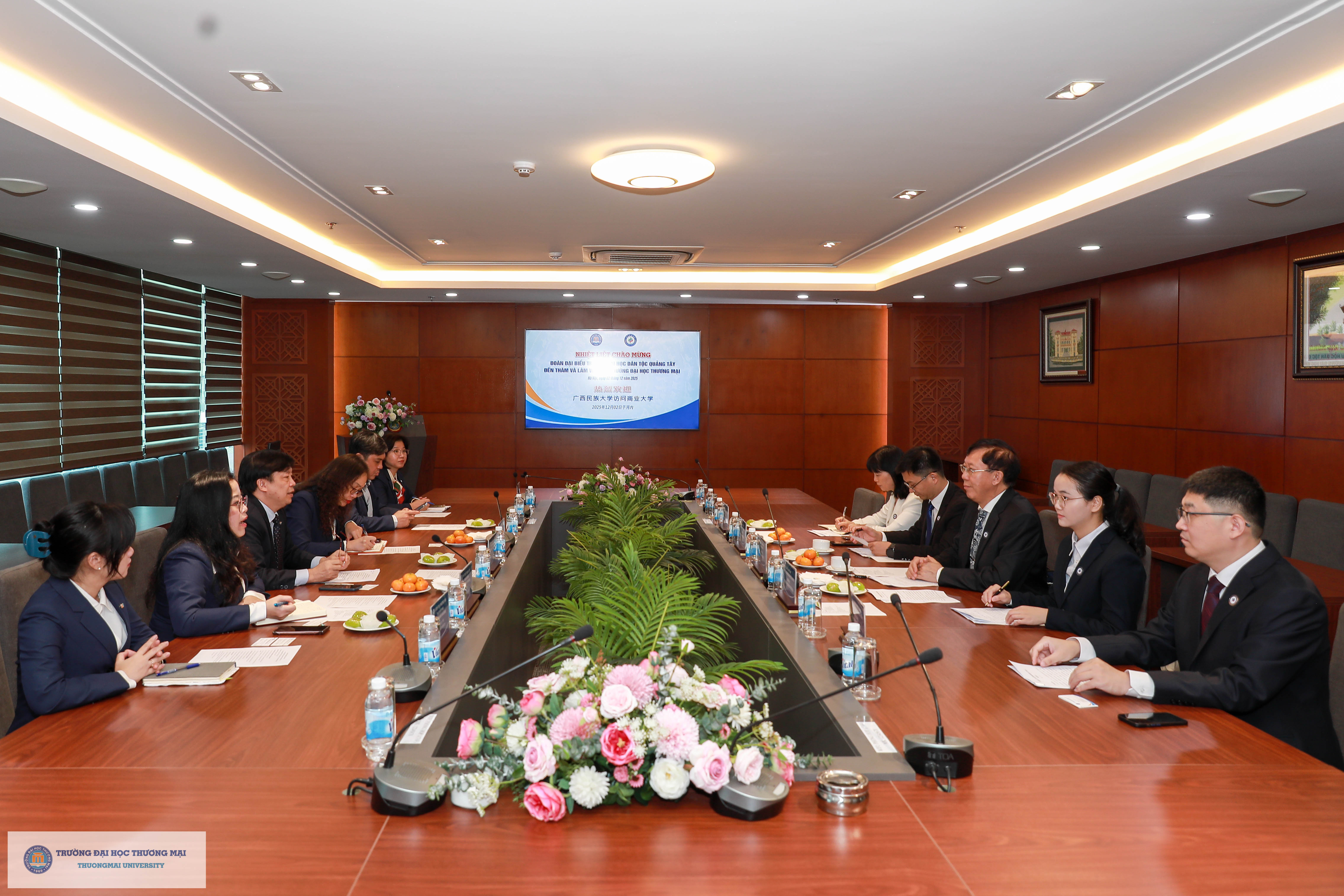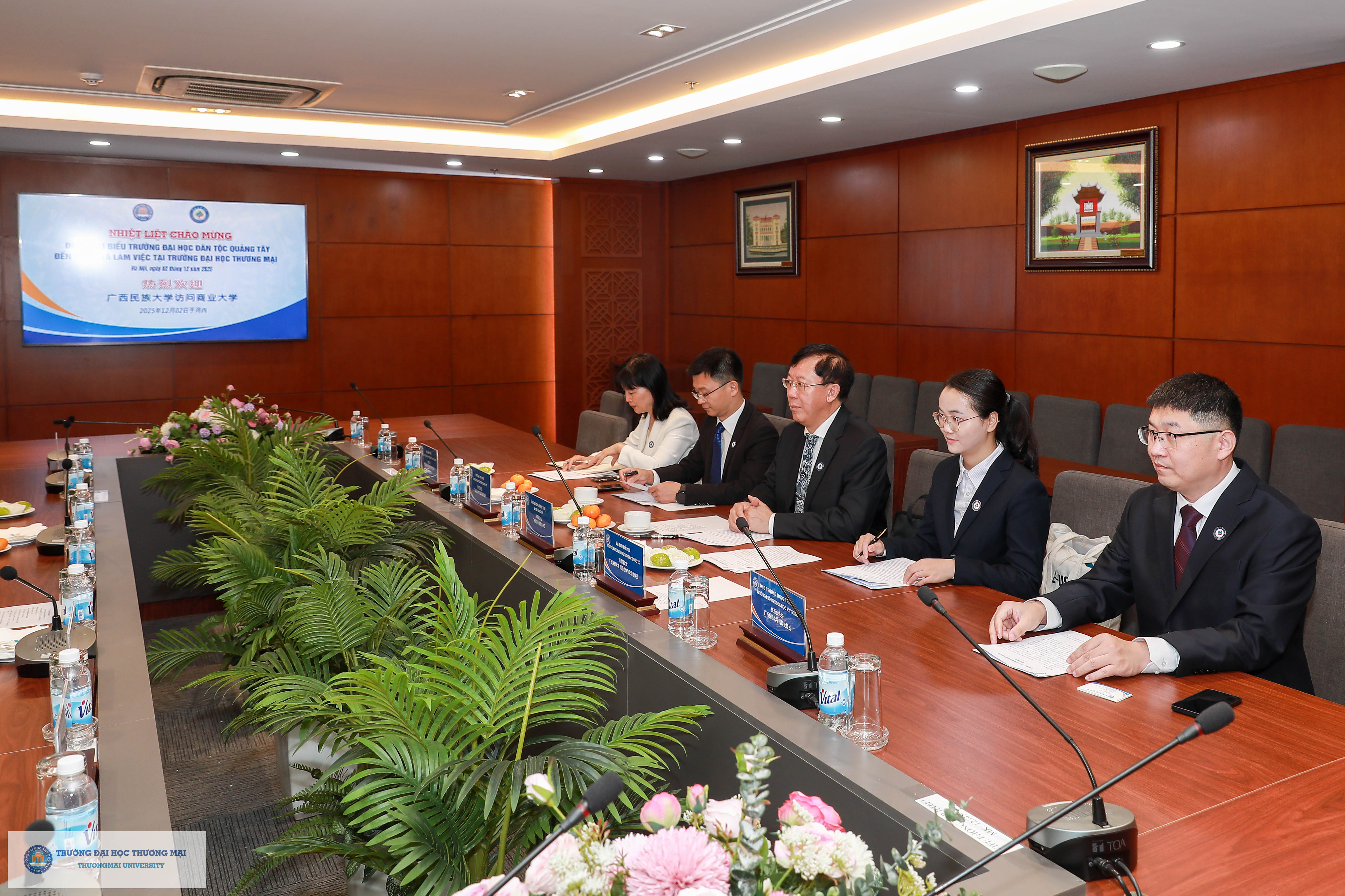 Trong không khí trao đổi cởi mở và thiện chí, hai bên đã cùng thảo luận về những thay đổi của Trường Đại học Thương mại và Trường Đại học Dân tộc Quảng Tây trong thời gian hợp tác vừa qua; đồng thời đề xuất tiềm năng hợp tác sắp tới trong nhiều lĩnh vực như: xúc tiến triển khai hợp tác trong trao đổi, bồi dưỡng giảng viên, trao đổi sinh viên; hợp tác trong đào tạo, các hoạt động nghiên cứu khoa học,…