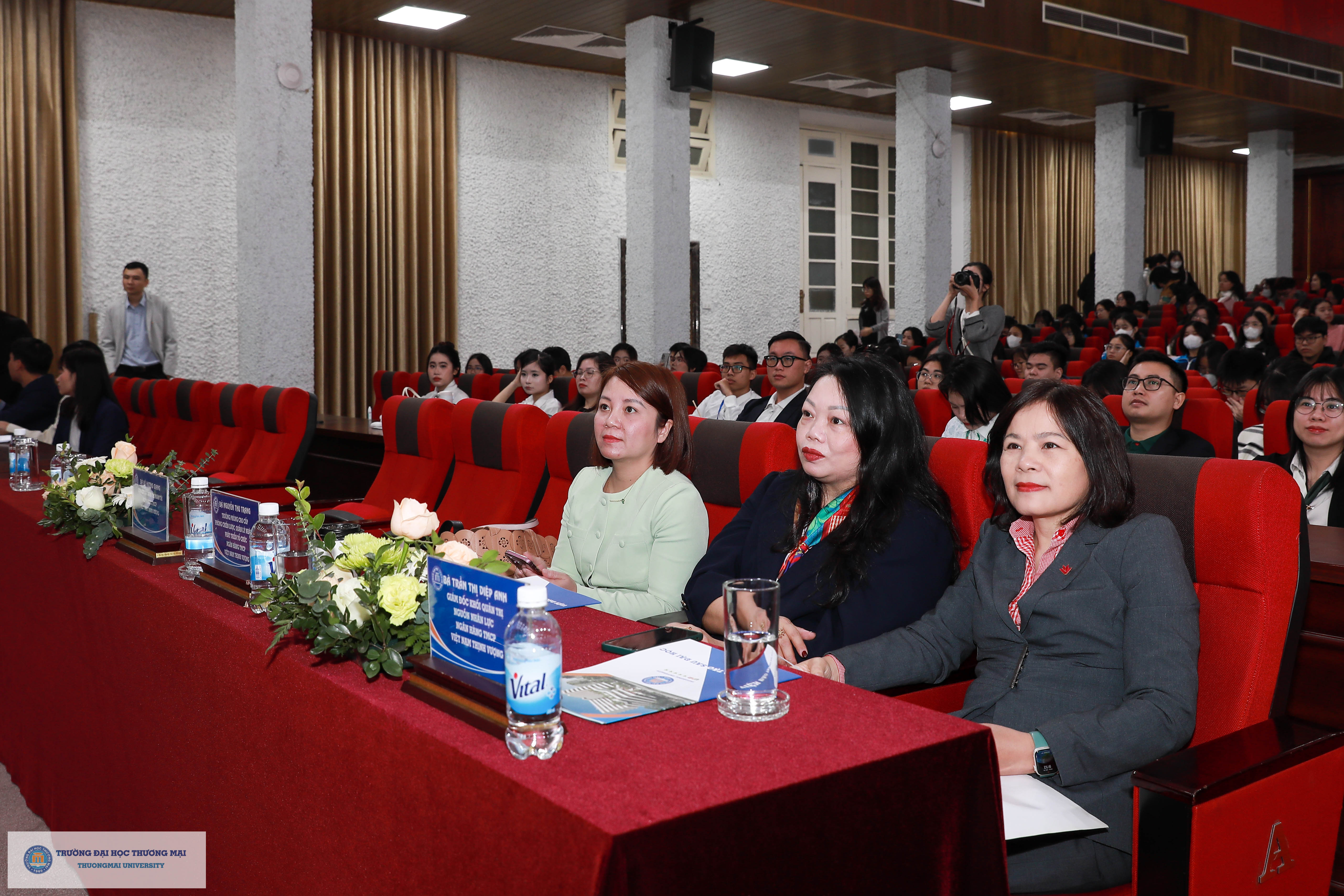 Về phía Trường Đại học Thương mại, tham dự chương trình có sự hiện diện của PGS,TS. Nguyễn Đức Nhuận – Phó Hiệu trưởng Nhà trường; PGS,TS. Phan Đình Quyết - Giám đốc Trung tâm Quan hệ doanh nghiệp và Việc làm; TS. Nguyễn Thu Quỳnh - Trưởng phòng Công tác sinh viên; PGS,TS. Mai Thanh Lan - Trưởng Phòng Tổ chức nhân sự; TS. Phan Thu Trang – Trưởng phòng Truyền thông và Tuyển sinh; ThS. Ngô Thị Quỳnh Chi - Phó Trưởng Phòng Quản lý đào tạo; TS. Lê Thị Trâm Anh - Phó Trưởng phòng Kế hoạch Tài chính; ThS. Nguyễn Quyết - Phó Chánh Văn phòng trường; TS. Nguyễn Mạnh Hùng – Phó Viện trưởng Viện đào tạo sau đại học; Các Thầy/Cô đại diện Lãnh đạo các Khoa, Viện tại Trường Đại học Thương mại.