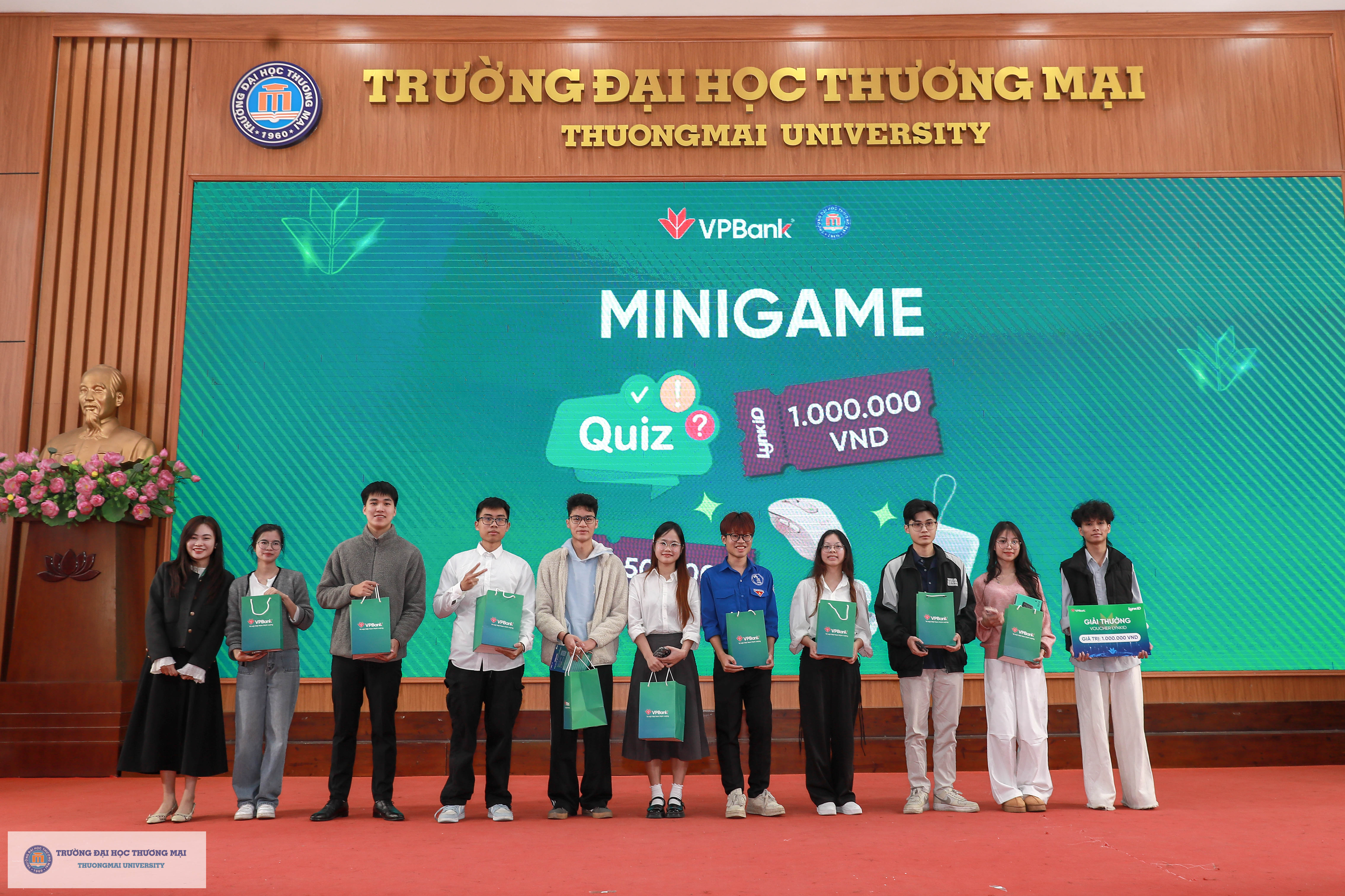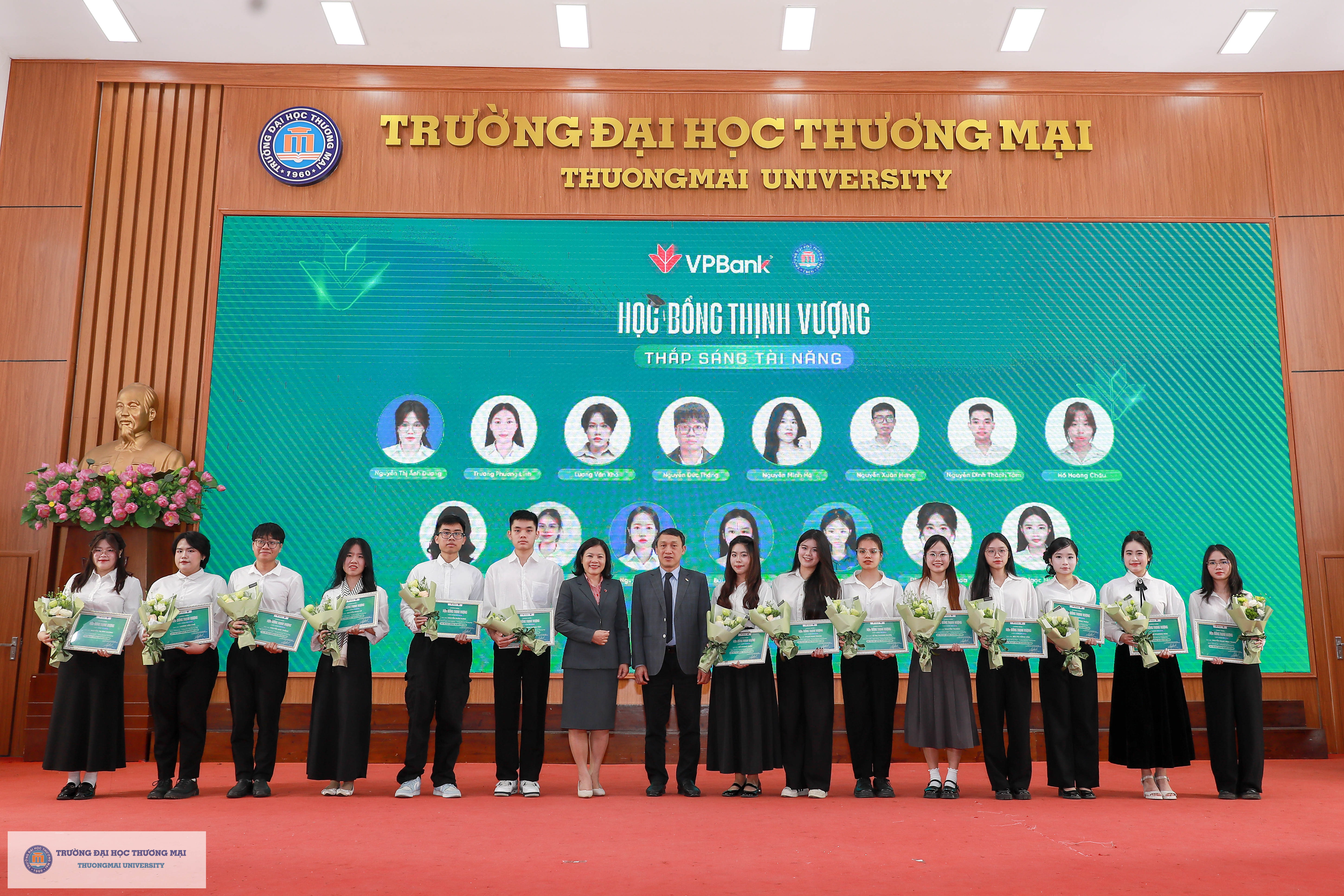 Nằm trong khuôn khổ chương trình hợp tác chiến lược giữa Trường Đại học Thương mại và VPBank giai đoạn 2026 - 2029, đại diện VPBank đã trao tặng 15 suất học bổng Thịnh Vượng, với tổng giá trị 150 triệu đồng - nhằm ghi nhận, biểu dương và khích lệ những nỗ lực, cố gắng không ngừng của các em sinh viên trong suốt quá trình học tập và rèn luyện tại Trường. Học bổng Thịnh Vượng VPBank được trao tặng cho các em sinh viên năm thứ ba, năm thứ tư có thành tích học tập tốt, tích cực tham gia các hoạt động phong trào, rèn luyện kỹ năng và được Nhà trường lựa chọn, đề xuất.