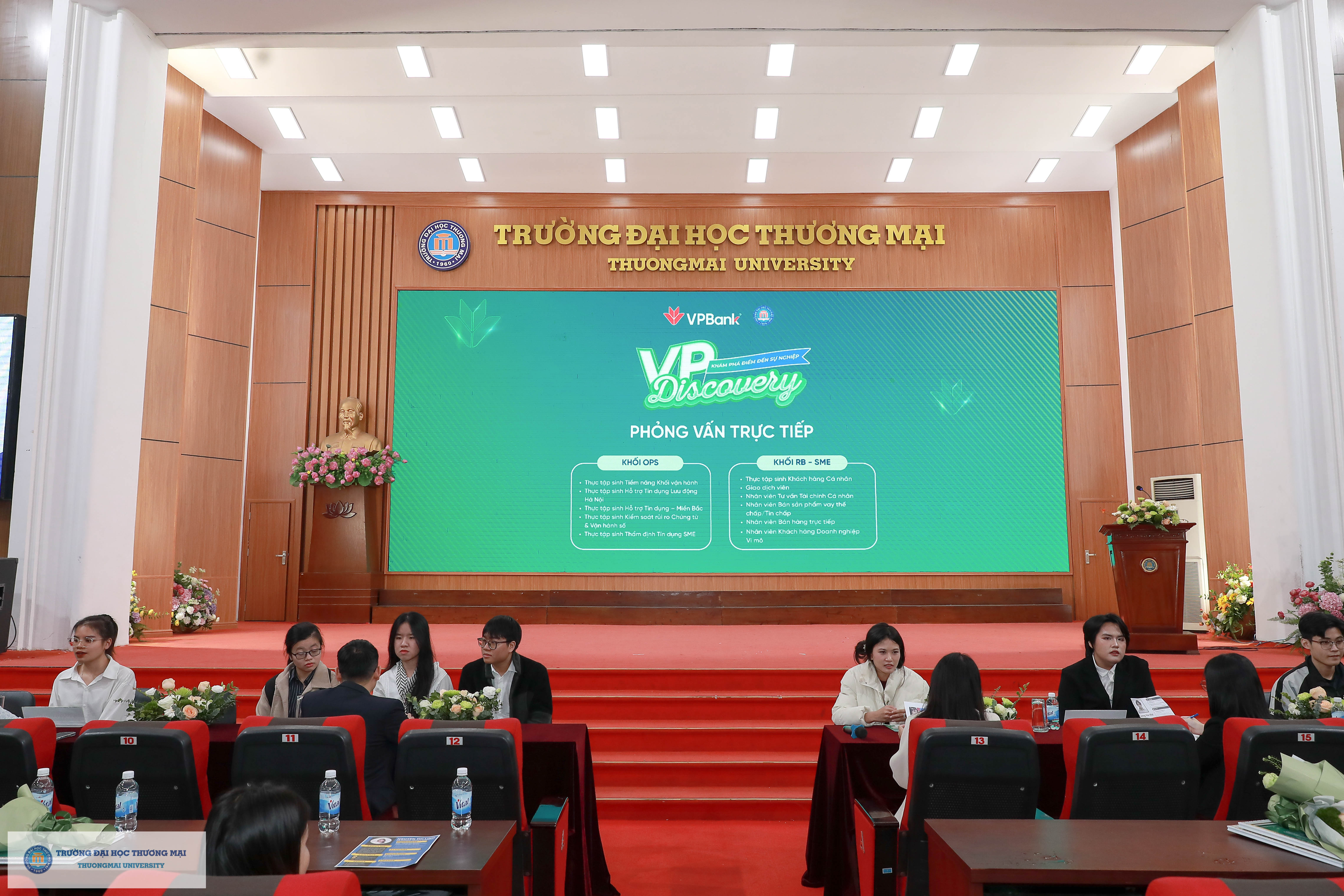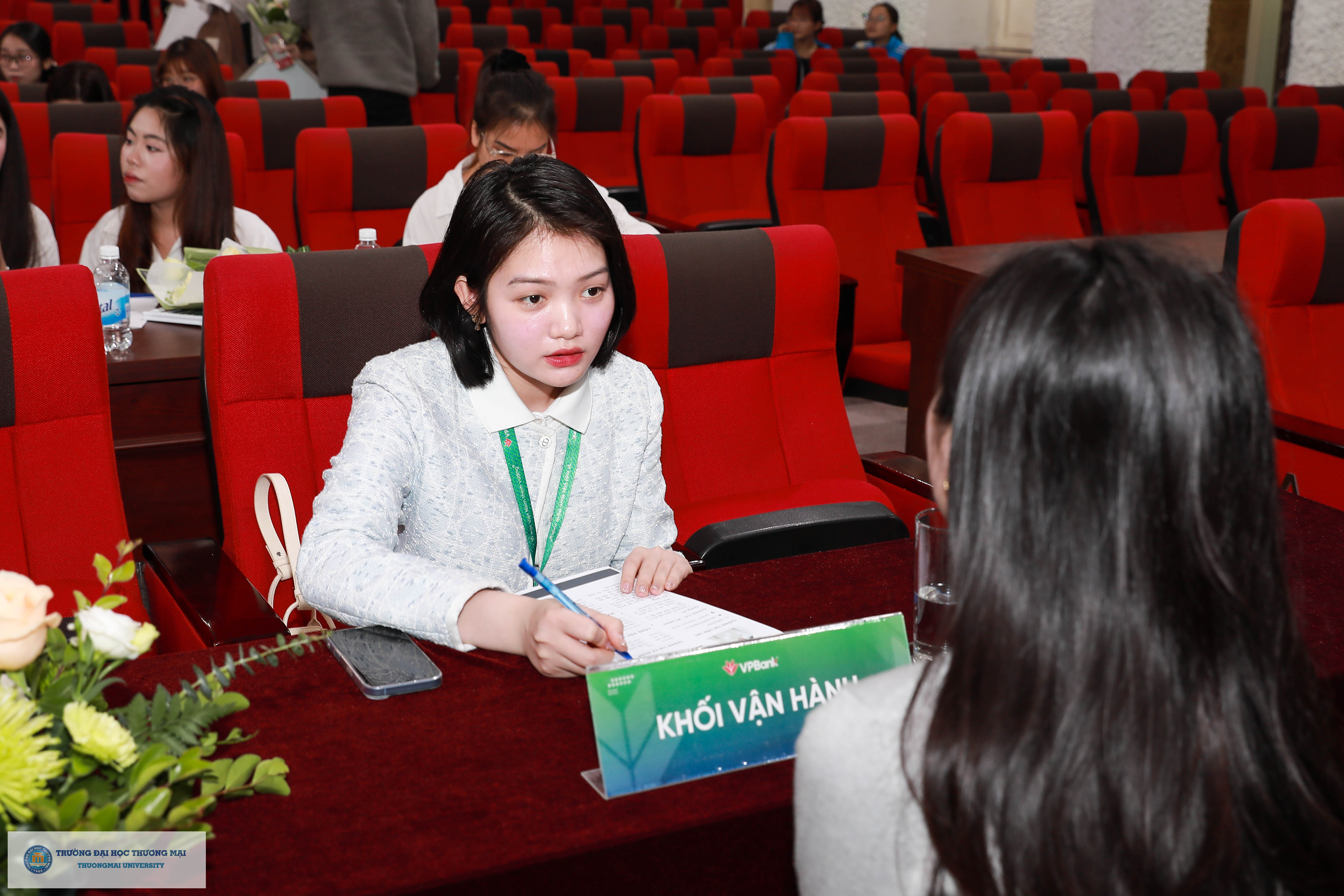 Cũng tại chương trình, VPBank đã tổ chức hoạt động phỏng vấn tuyển dụng trực tiếp dành cho sinh viên Trường Đại học Thương mại, giúp các bạn có những trải nghiệm thiết thực phục vụ hành trang tìm kiếm công việc mơ ước.
