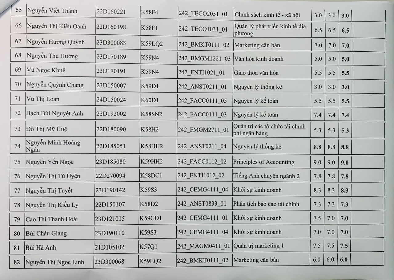 Kết quả chấm lại bài thi học phần kỳ 2 năm học 2024 - 2025 (TB số 28/KT)