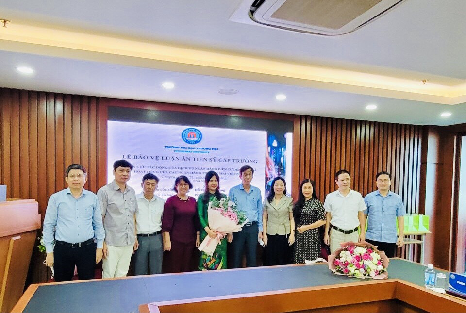 Chiều ngày 27/9/2021, Phòng Hội thảo số 2 nhà F, Trường Đại học Thương mại đã tổ chức Lễ bảo vệ luận án tiến sĩ cho nghiên cứu sinh Đỗ Thanh Hương, chuyên ngành Tài chính – Ngân hàng (mã số 934.02.01), đề tài luận án “Nghiên cứu tác động của dịch vụ ngân hàng điện tử đến kết quả hoạt động của các ngân hàng thương mại Việt Nam” với sự hướng dẫn khoa học của PGS.TS. Nguyễn Văn Minh và PGS.TS. Nguyễn Thị Mùi