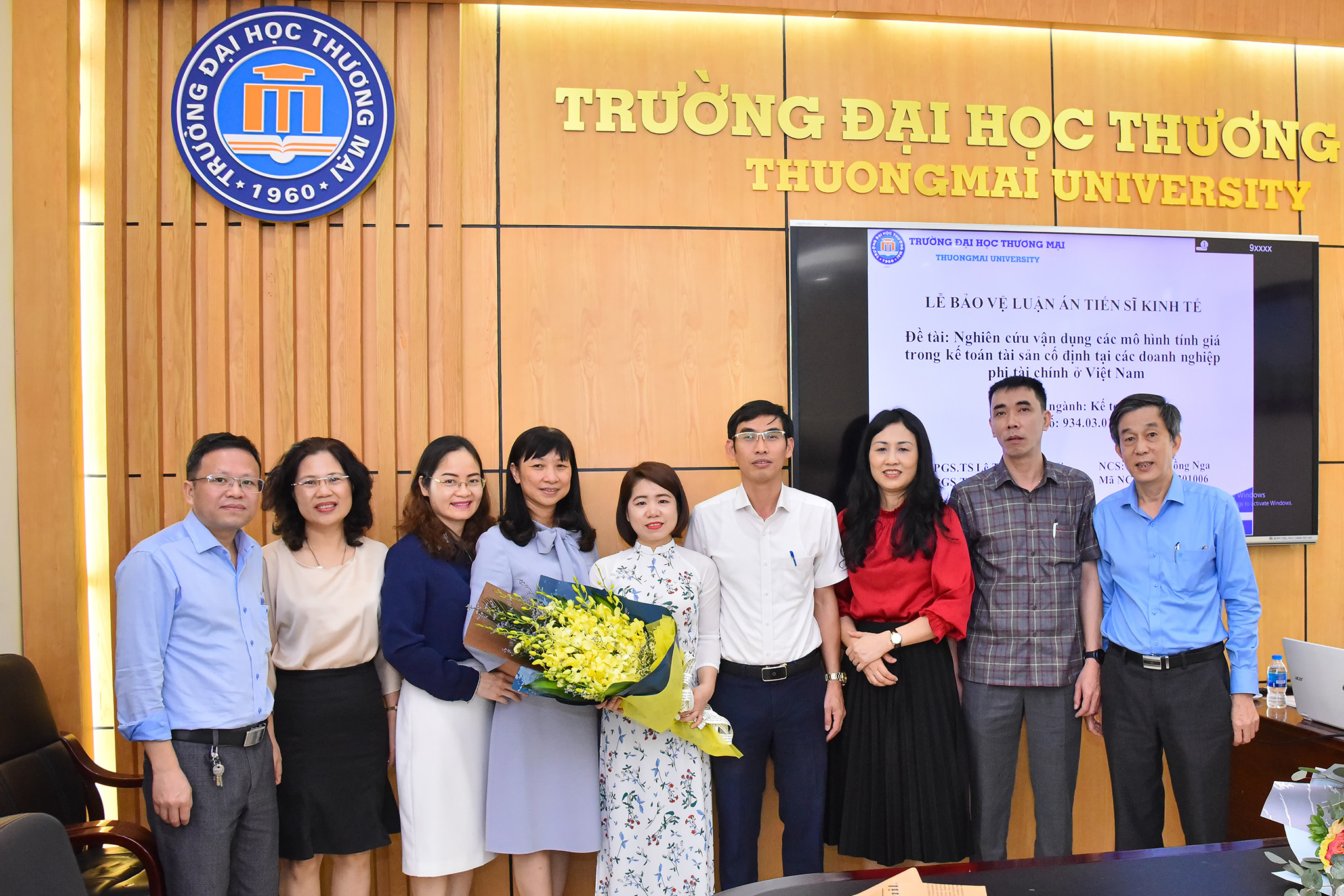 Sáng ngày 06/04/2021, Phòng họp số 2 nhà I, Trường Đại học Thương mại đã tổ chức Lễ bảo vệ luận án tiến sĩ cho nghiên cứu sinh Nguyễn Hồng Nga, chuyên ngành Kế toán (mã số 9340301), đề tài luận án “Nghiên cứu vận dụng các mô hình tính giá trong kế toán tài sản cố định tại các doanh nghiệp phi tài chính ở Việt Nam” với sự hướng dẫn khoa học của PGS,TS. Lê Thị Thanh Hải và PGS,TS. Hà Thị Thúy Vân.
