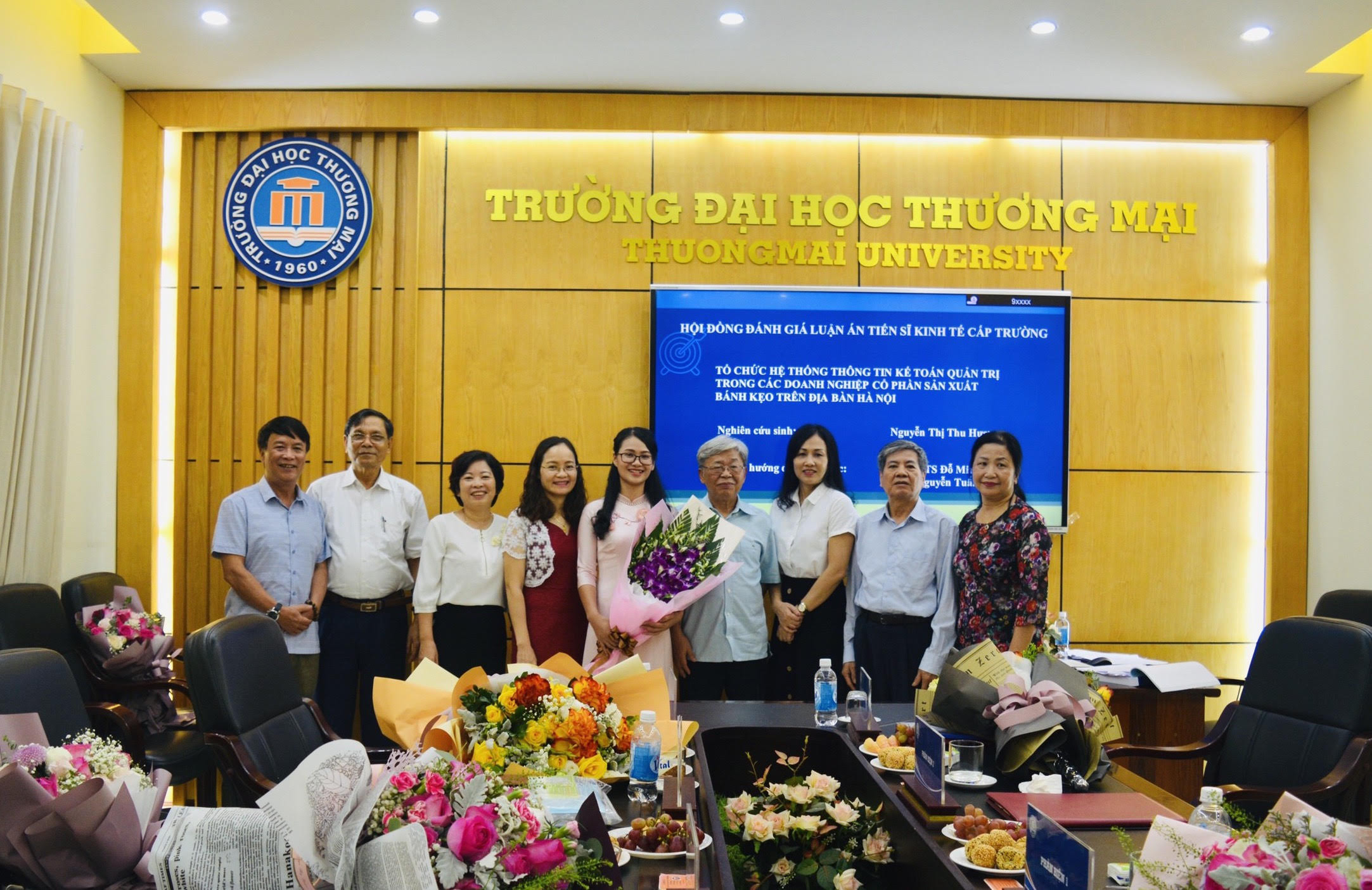 Sau khi nghe nghiên cứu sinh trình bày tóm tắt luận án và trả lời các câu hỏi của các thành viên Hội đồng và các khách mời tham dự, Hội đồng chấm luận án đã họp kín và bỏ phiếu. Với kết quả bỏ phiếu 7/7 phiếu tán thành, GS,TS. Nguyễn Bách Khoa thay mặt Hội đồng chúc mừng nghiên cứu sinh Nguyễn Thị Thu Hương bảo vệ thành công luận án và chúc mừng tập thể giáo viên hướng dẫn cùng Trường Đại học Thương mại, Khoa Kế toán – Kiểm toán đã có thêm một cán bộ có trình độ tiến sĩ.