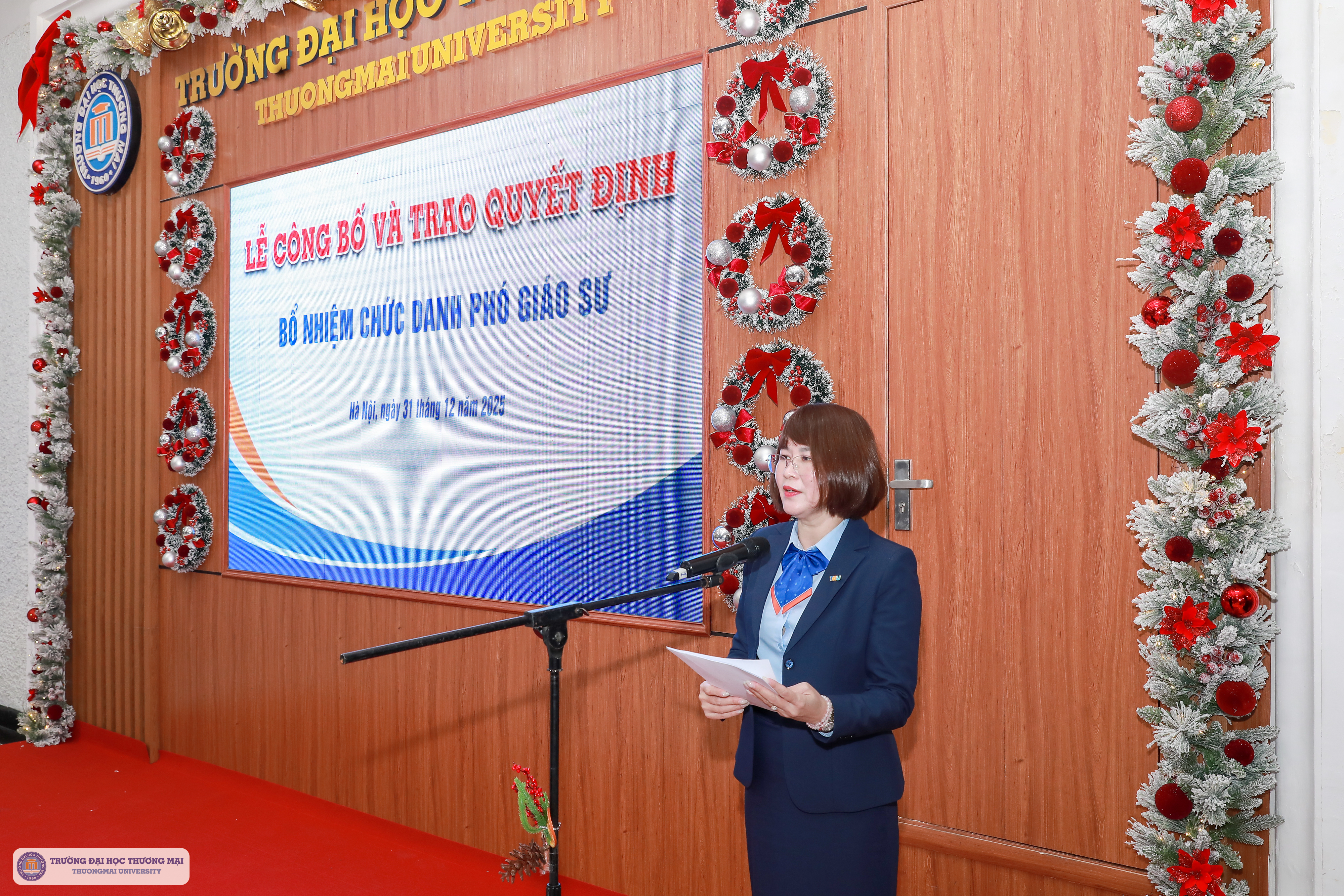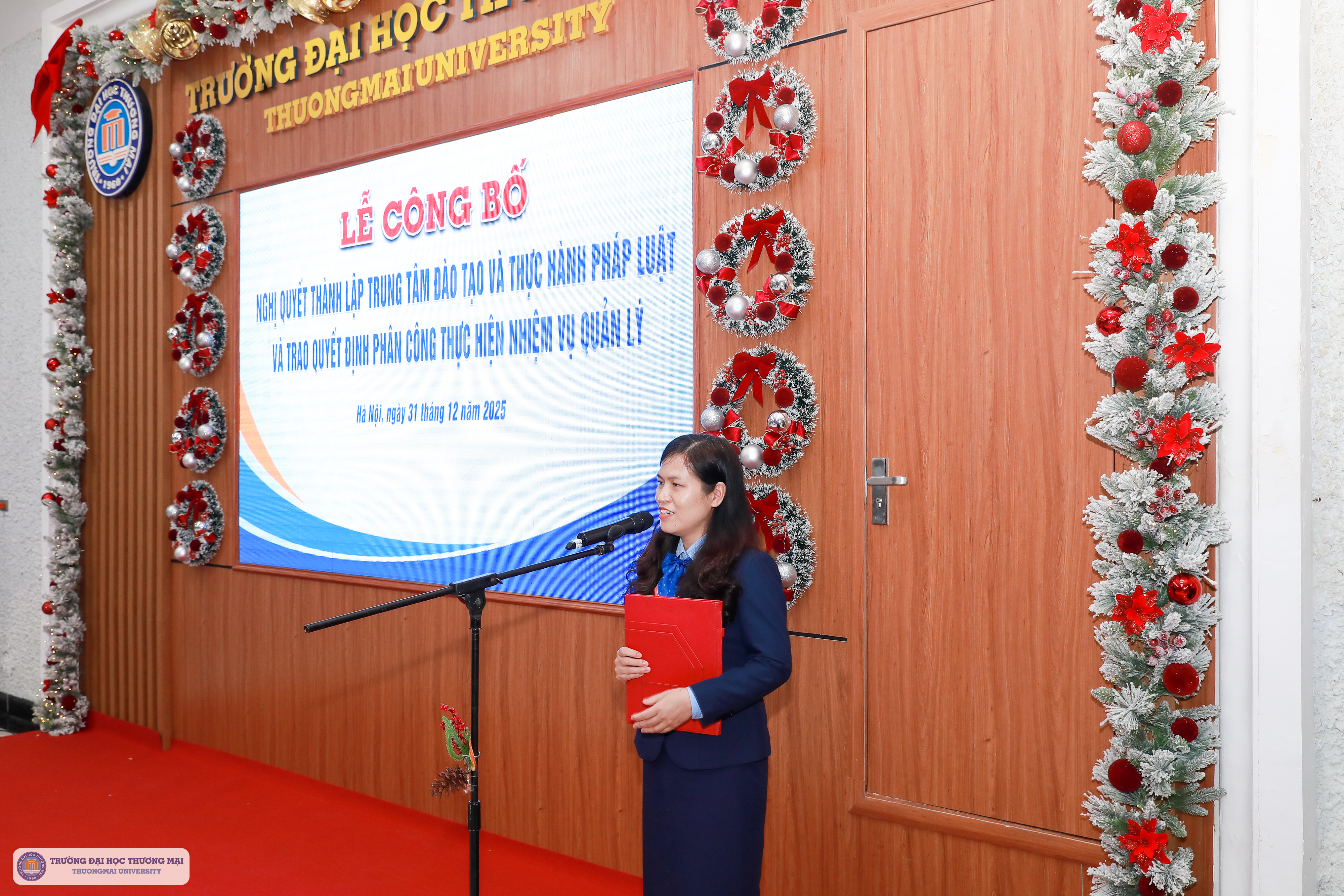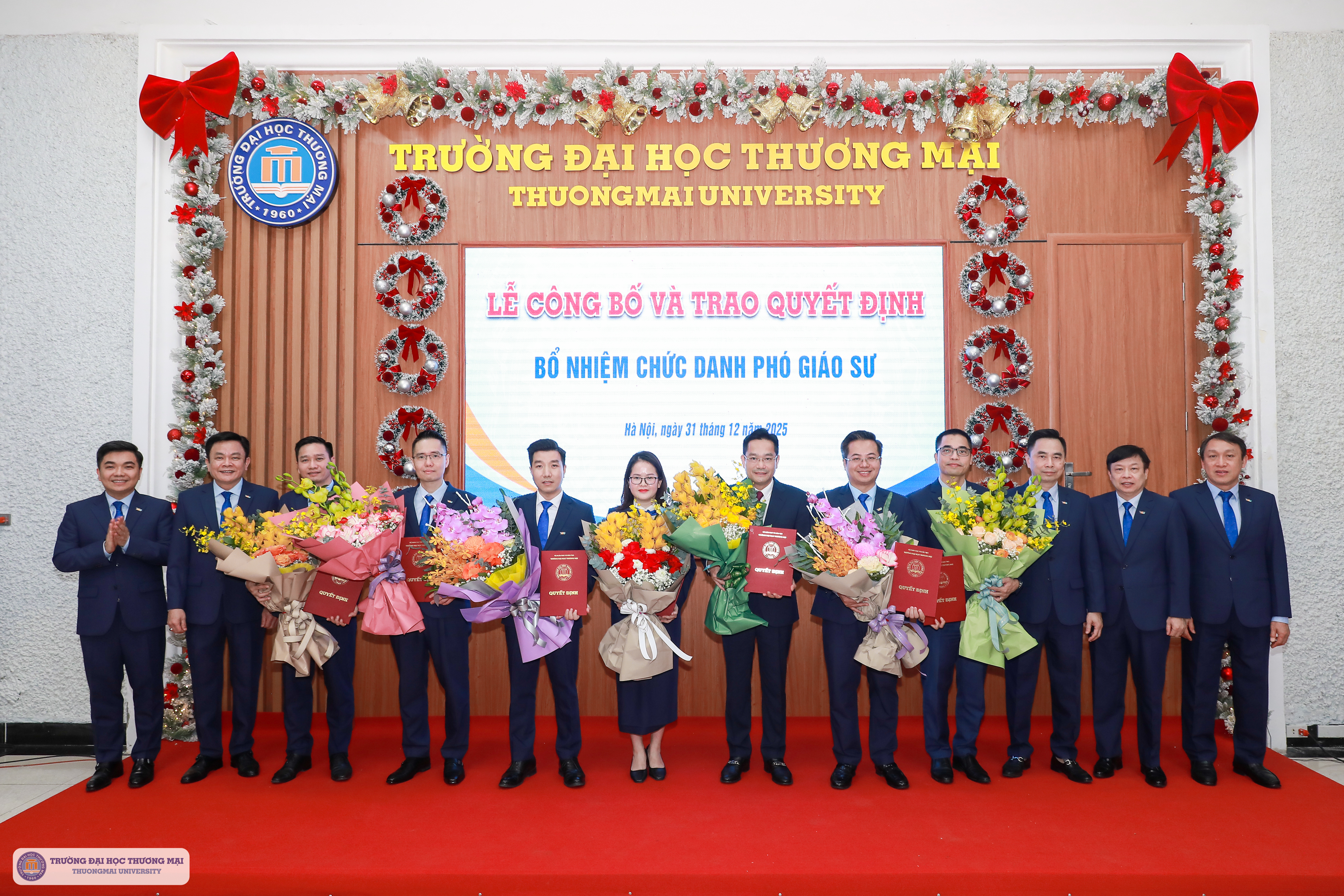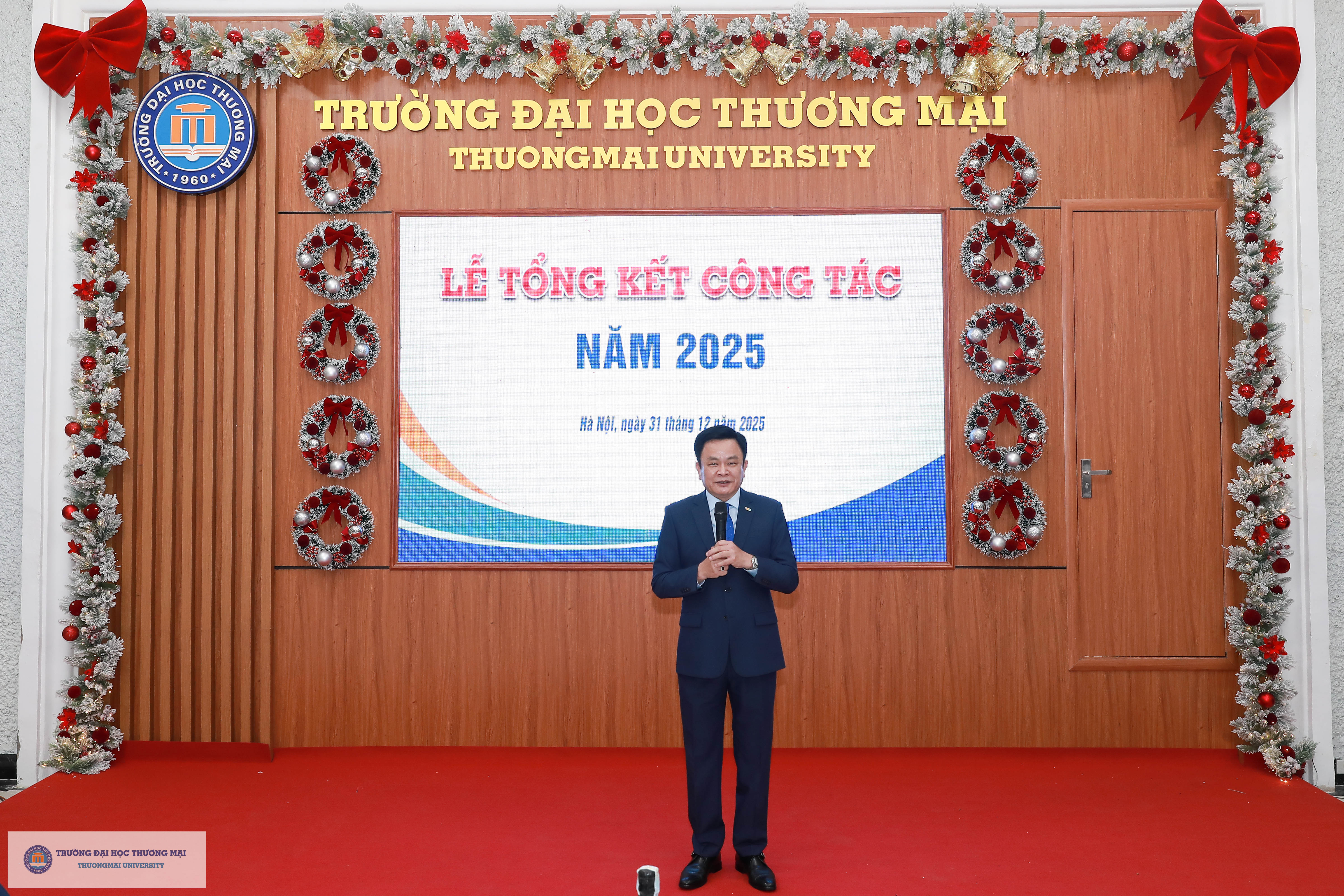 Lễ công bố Nghị quyết thành lập Trung tâm Đào tạo và Thực hành pháp luật và trao quyết định phân công thực hiện nhiệm vụ quản lý; Công bố và trao quyết định bổ nhiệm chức danh Phó Giáo sư và Lễ tổng kết công tác năm 2025 đã kết thúc thành công tốt đẹp. Chúc các Thầy Cô tiếp tục phát huy truyền thống nghề, đưa ngành giáo dục nói chung và Trường Đại học Thương mại nói riêng lên một tầm cao mới và đào tạo nên những thế hệ học trò xuất sắc, trở thành những công dân có ích, góp phần xây dựng Thủ đô và đất nước phát triển, hội nhập quốc tế. Chúc toàn thể viên chức Trường Đại học Thương mại chào đón một năm mới An khang - Thịnh vượng và Thành công.