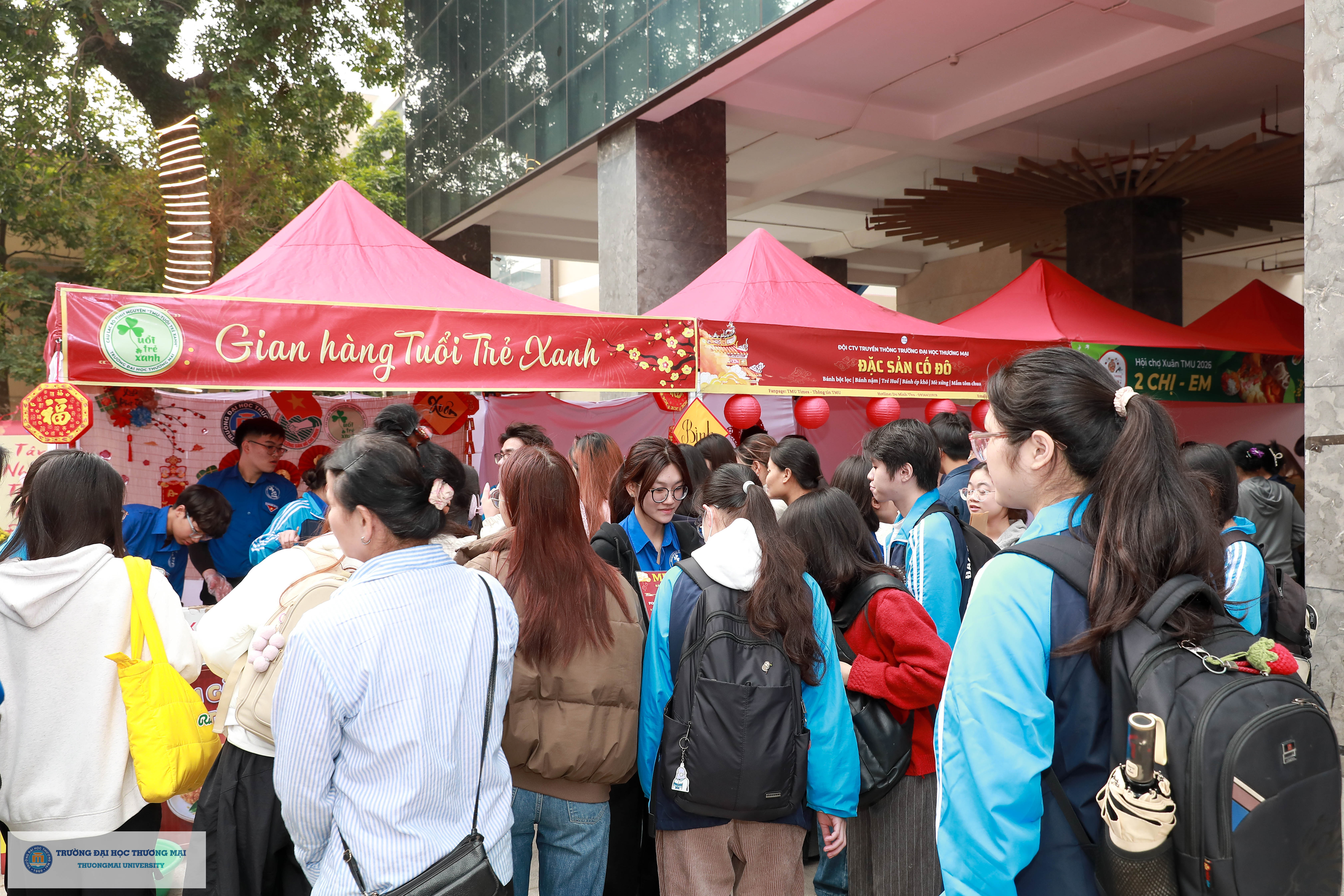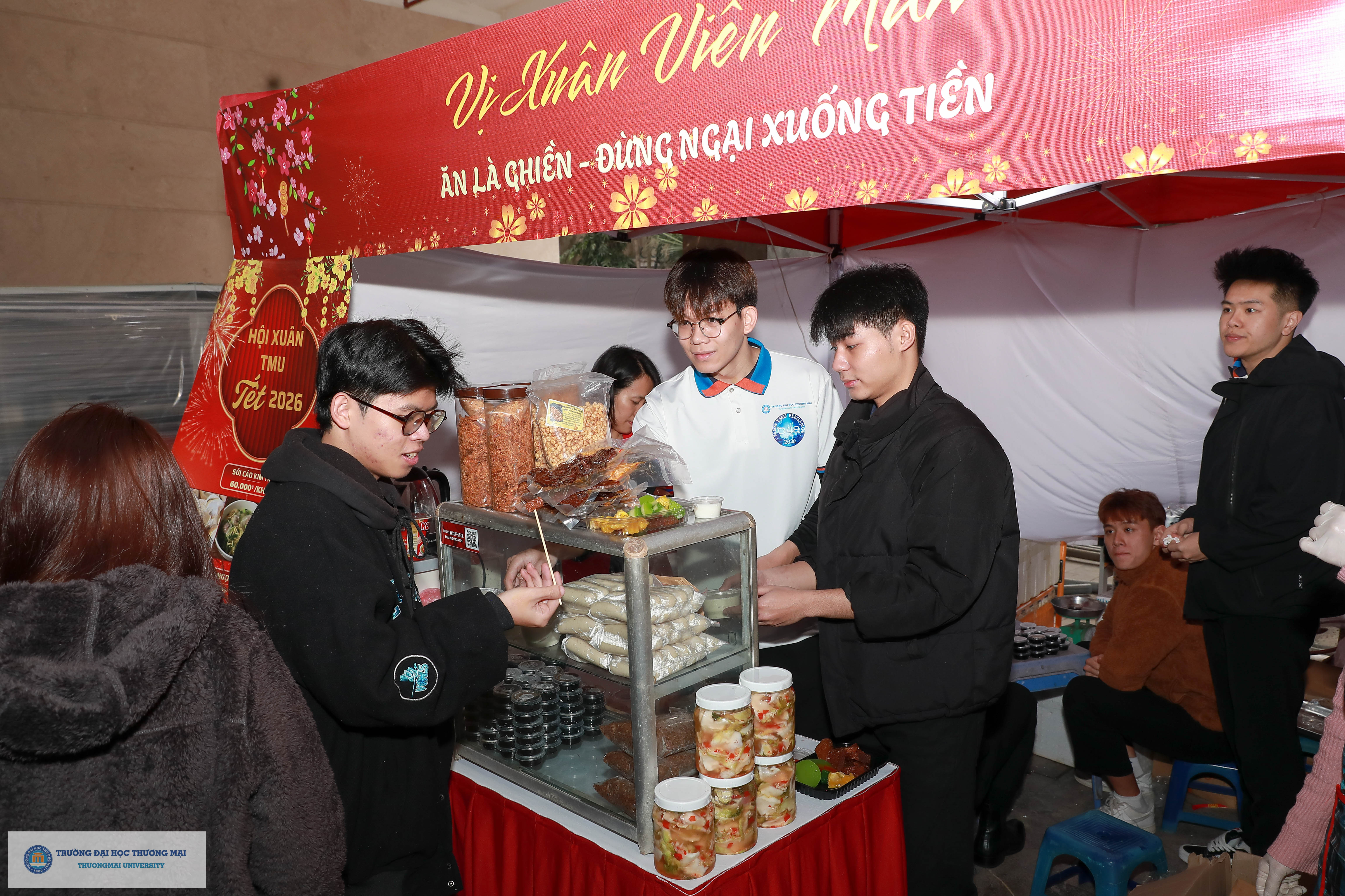 Với mục đích thiết thực chăm lo đến đời sống vật chất, tinh thần cho đoàn viên, cán bộ, nhà giáo, người lao động theo đúng tinh thần chỉ đạo của Công đoàn Ngành “Tết sum vầy – Xuân chia sẻ”, đưa sản phẩm, hàng hóa, dịch vụ chất lượng tốt của các nhà cung cấp đến với đông đảo công đoàn viên, chương trình “Hội chợ Xuân TMU 2026” đã thu hút sự quan tâm lớn của đoàn viên, CBNGNLĐ, sinh viên và cựu sinh viên Trường với rất nhiều gian hàng bày bán các sản phẩm Tết đa dạng, chất lượng.