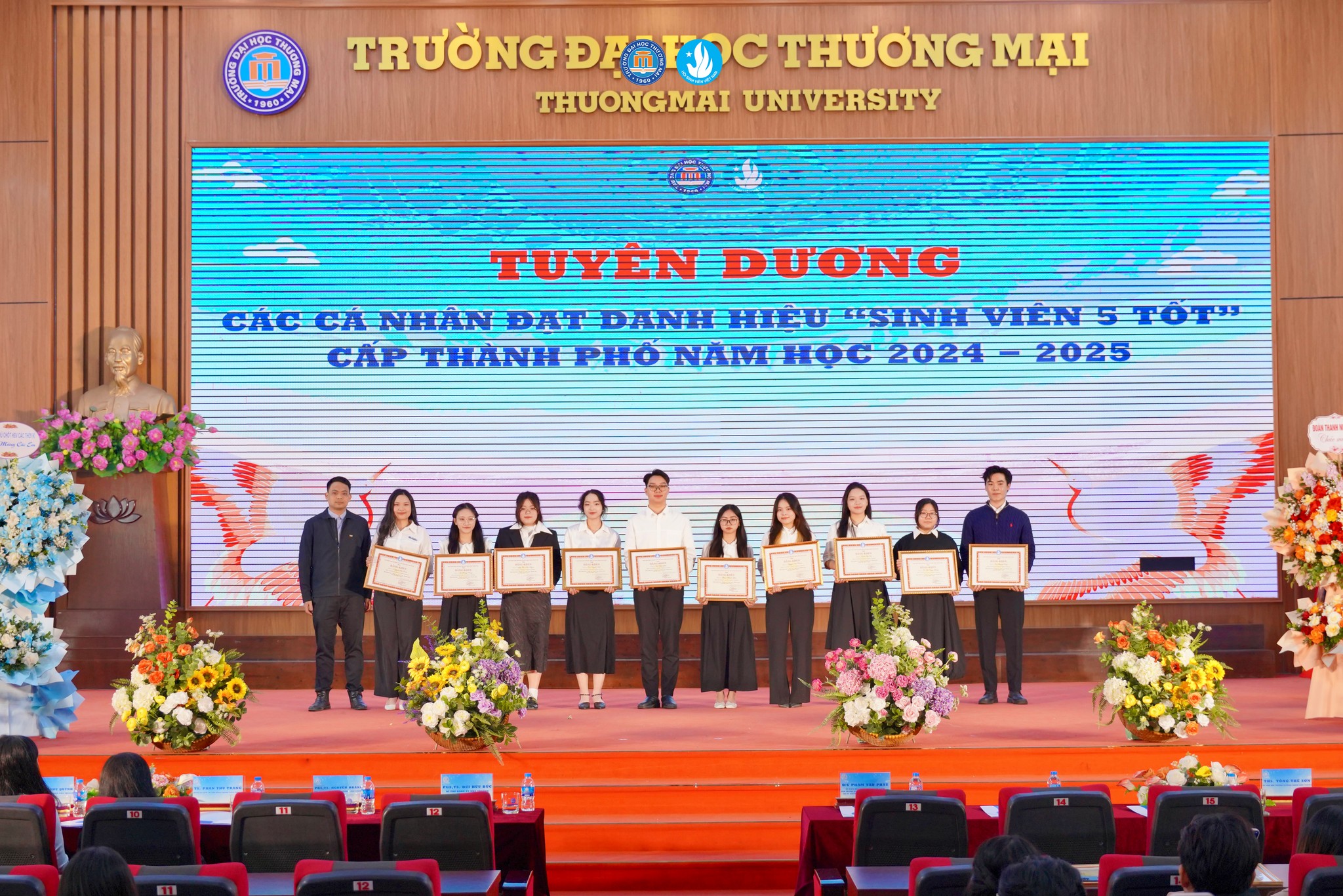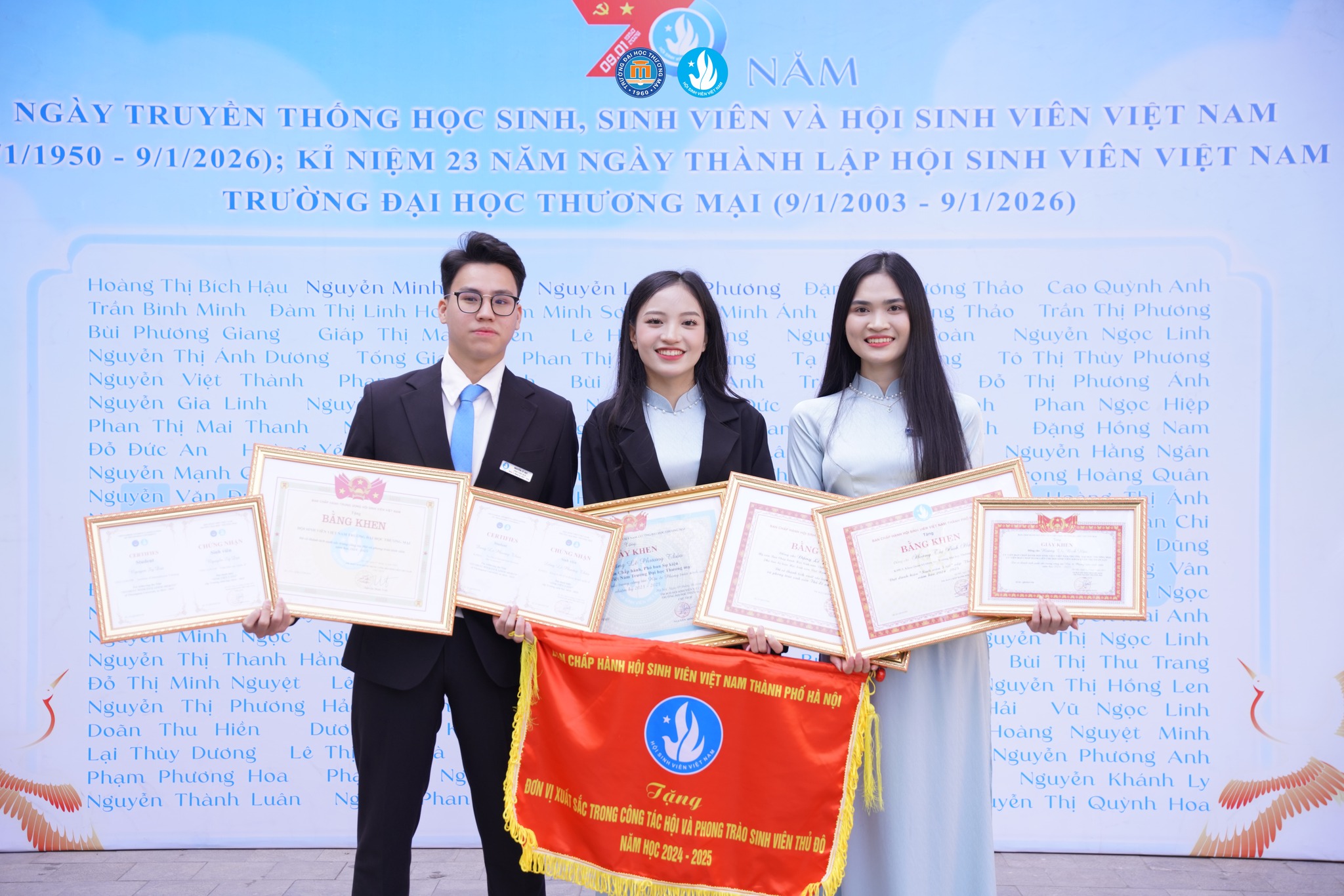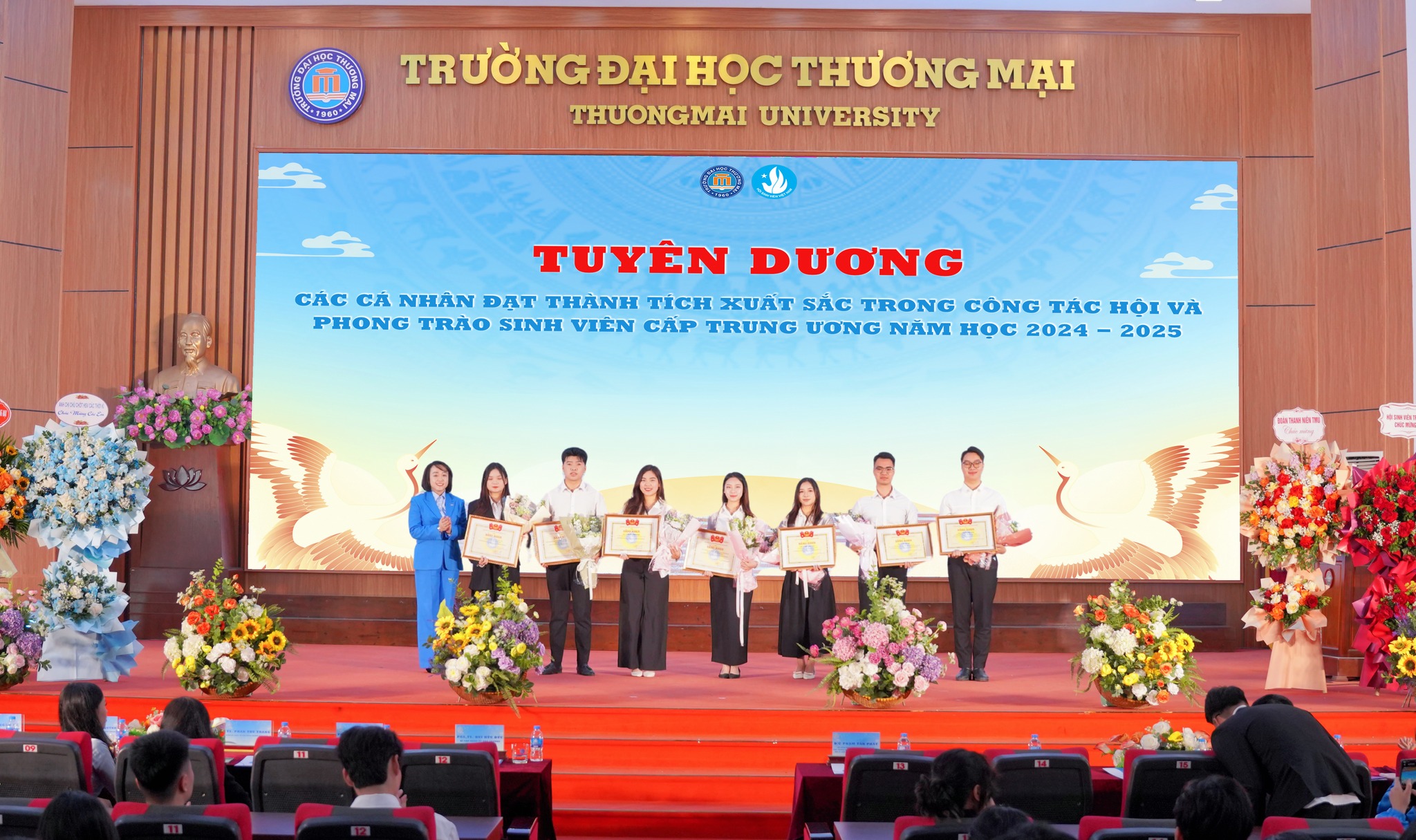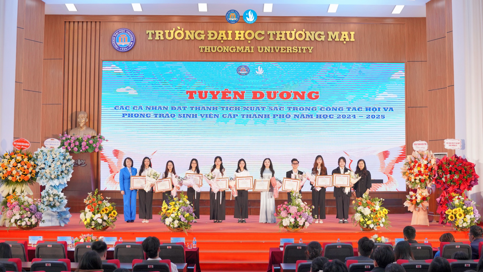 Trong chương trình, Hội Sinh viên Việt Nam Trường Đại học Thương mại đã biểu dương 04 tập thể và 05 cá nhân nhận bằng khen từ Trung ương Hội Sinh viên Việt Nam; 05 tập thể và 04 cá nhân nhận bằng khen từ Hội Sinh viên Việt Nam Thành phố Hà Nội; 10 tập thể và 100 cá nhân nhận bằng khen từ Hội Sinh viên Trường đã có thành tích xuất sắc trong công tác Hội và phong trào Sinh viên năm học 2024 - 2025.