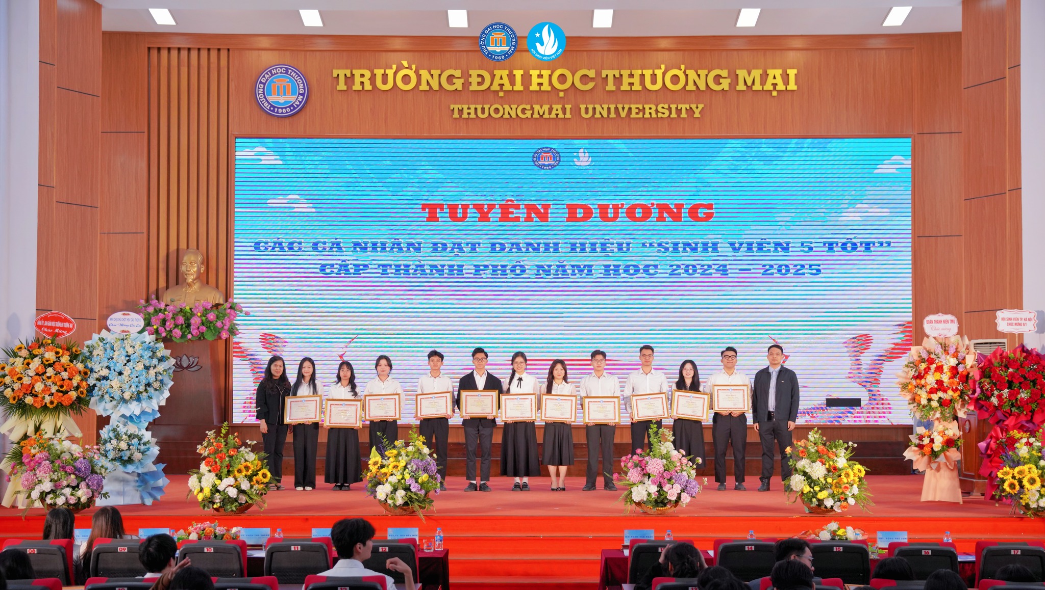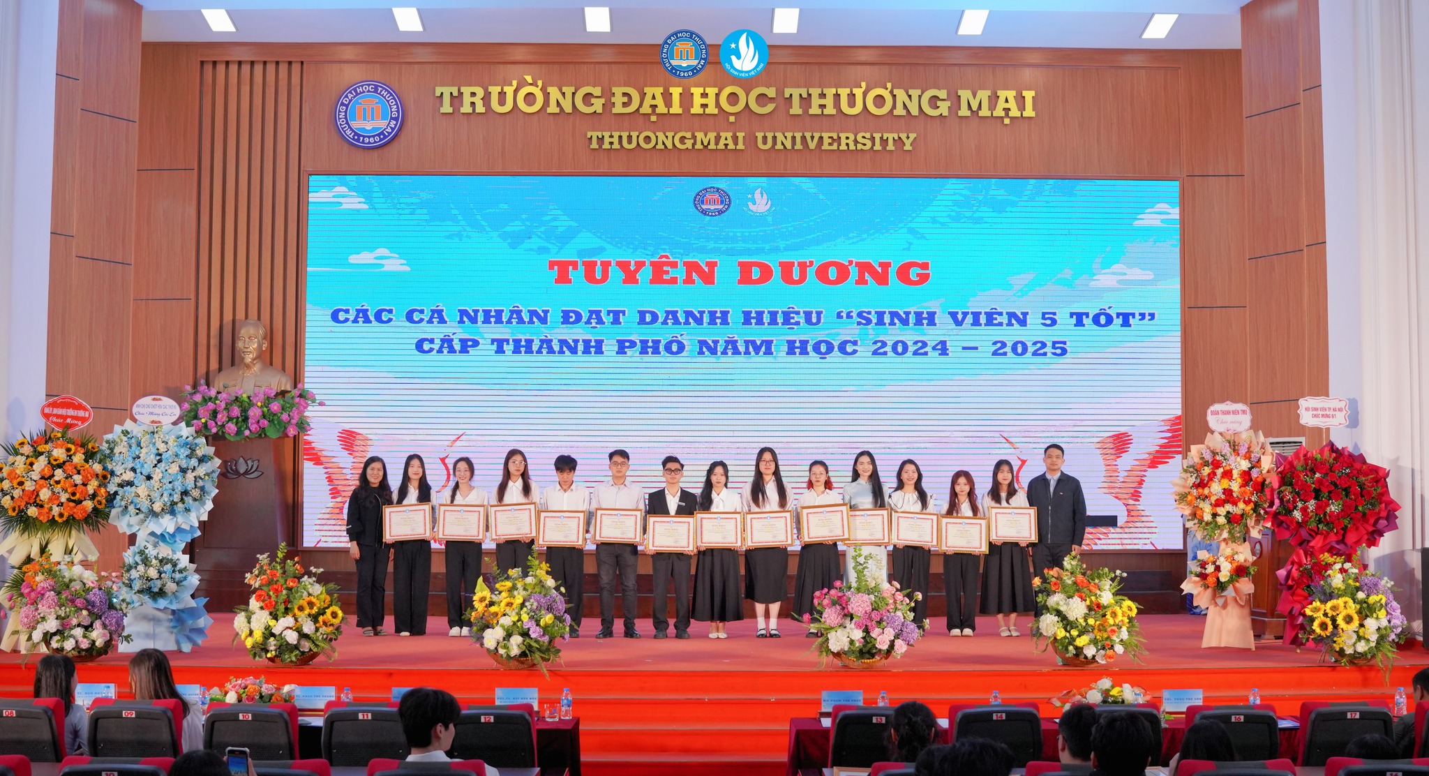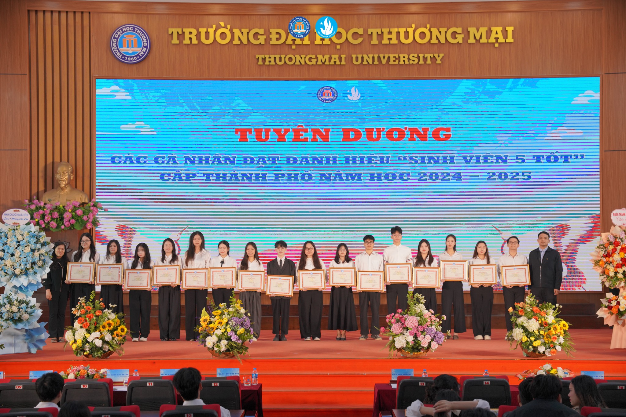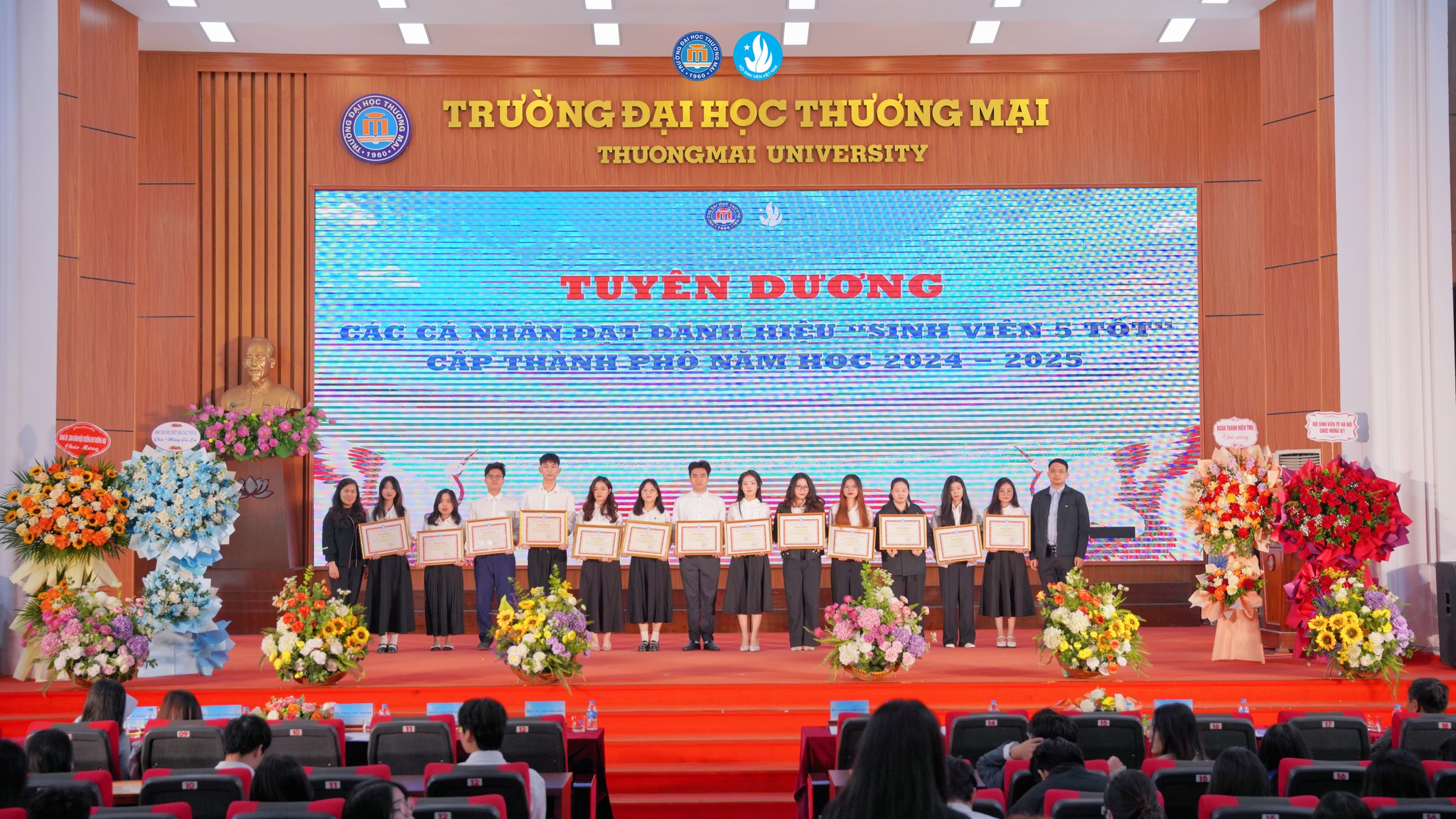 Trong chương trình, Hội Sinh viên Việt Nam Trường Đại học Thương mại đã biểu dương 04 tập thể và 05 cá nhân nhận bằng khen từ Trung ương Hội Sinh viên Việt Nam; 05 tập thể và 04 cá nhân nhận bằng khen từ Hội Sinh viên Việt Nam Thành phố Hà Nội; 10 tập thể và 100 cá nhân nhận bằng khen từ Hội Sinh viên Trường đã có thành tích xuất sắc trong công tác Hội và phong trào Sinh viên năm học 2024 - 2025.