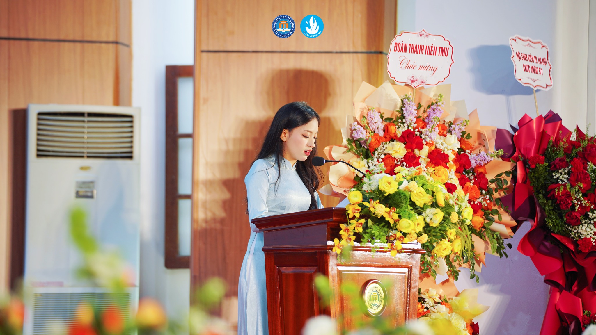 Thay mặt Ban Thư ký Hội Sinh viên Trường, đồng chí Đặng Lê Phương Thảo - Chủ tịch Hội Sinh viên Trường đã đọc diễn văn khai mạc và báo cáo những thành tích mà Hội Sinh viên Việt Nam Trường Đại học Thương mại đạt được trong năm học 2024 - 2025. Đặc biệt, Hội Sinh viên Trường vinh dự đón nhận những thành tích tiêu biểu, đáng tự hào, đó chính là bằng khen cho Tập thể đã có thành tích xuất sắc trong Công tác Hội và Phong trào Sinh viên do Trung ương Hội Sinh viên Việt Nam trao tặng và Cờ thi đua Đơn vị có thành tích xuất sắc trong Công tác Hội và Phong trào sinh viên Thủ đô do Hội Sinh viên Thành phố Hà Nội trao tặng.