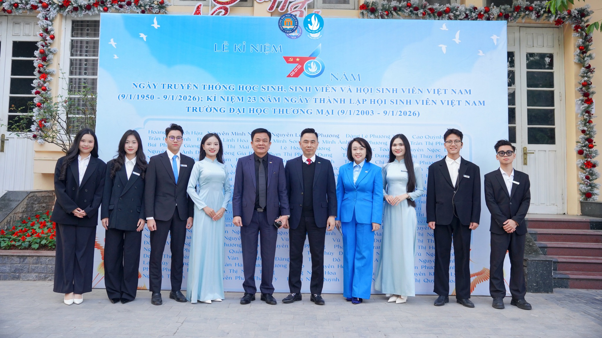Đến tham dự Lễ Kỷ niệm, Hội Sinh viên Việt Nam Trường Đại học Thương mại vinh dự đón tiếp các quý đại biểu, khách quý, quý thầy cô cùng toàn thể các bạn sinh viên tiêu biểu đạt được những thành tích xuất sắc.